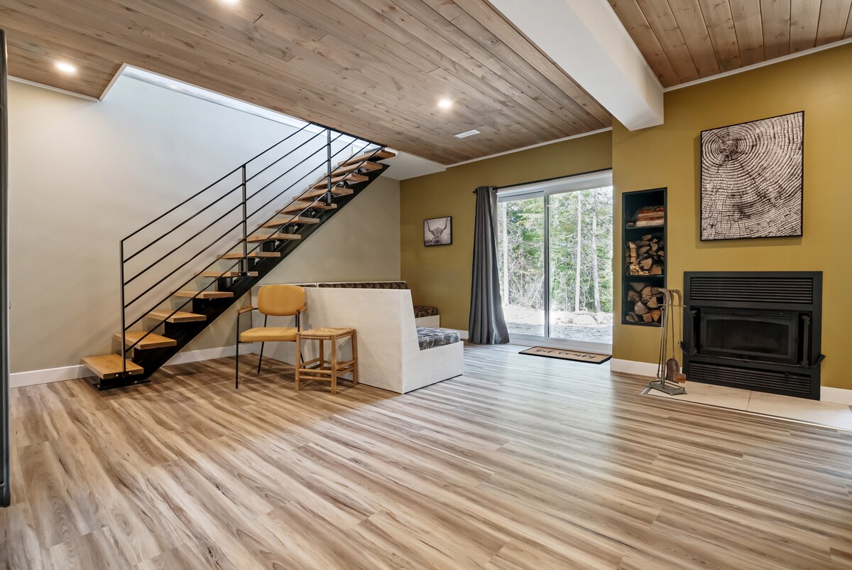 Lig do scíth agus lig do scíth ag Karibu Chalet in Val - des - Monts, níos lú ná 50 nóiméad sa charr ó Ottawa agus 2 uair an chloig ó Montréal. Suite ar limistéar gleoite le cosáin fánaíochta, 12+ acra de thalamh foraoise le hiniúchadh a dhéanamh orthu. Is saoire ghearr ón gcathair é ár dteach agus is féidir leat taitneamh a bhaint as an méid atá le tairiscint ag an dúlra. Tá gach rud a theastaíonn uait agus níos mó sa spás gleoite seo atá cúlráideach sa choill! Is teachín iontach é do theaghlach agus do chairde sínte i ngach séasúr!