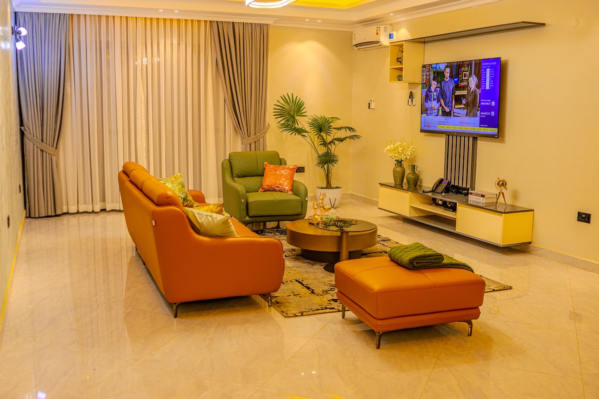 Bring the whole family to this great place with lots of room for fun. This newly and beautifully designed apartment offers luxury, comfort, style, and convenience all in one. Located along Entebbe road, 20 minutes’ drive to Entebbe International airport. We have Cable TV, gym, sauna, steam room. The fully equipped kitchen. Our bedside drawers are fitted with inbuilt phone charging system and Bluetooth speaker. Our bathroom is fitted with an intelligent towel holder, and 5G hair dryer