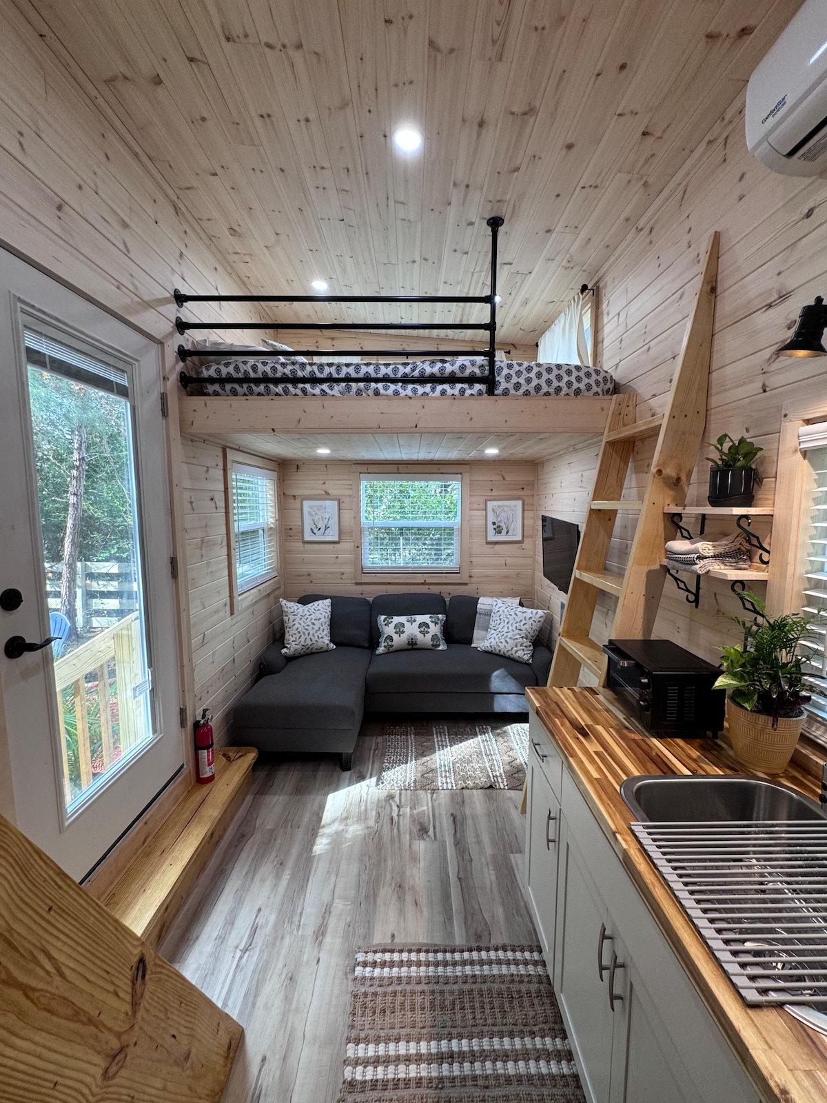 Lonnaithe ar shnámh gan mhilleadh (gan innill gháis) ag snámh agus ag iascaireacht Lake Mable, is áit fhoirfe é an teach gleoite seo le haghaidh saoire teaghlaigh atá lán le spraoi nó le haghaidh saoire ghearr shuaimhneach deireadh seachtaine amháin. Bain sult as fuaimeanna síochánta an dúlra agus tú ag suí agus ag féachaint ar luí na gréine thar an loch, róstadh roinnt leamhachán thar an bhfearas dóiteáin, nó lig do scíth cois locha le sracfhéachaint ar a bhfuil slata iascaireachta ar láimh. B'fhéidir go bhfeicfidh tú Sandhill Cranes, Red - headed Woodpeckers, nó fiú cúpla fia. Lig do d'imní le sruth agus bain sult as an suaimhneas timpeall ort.