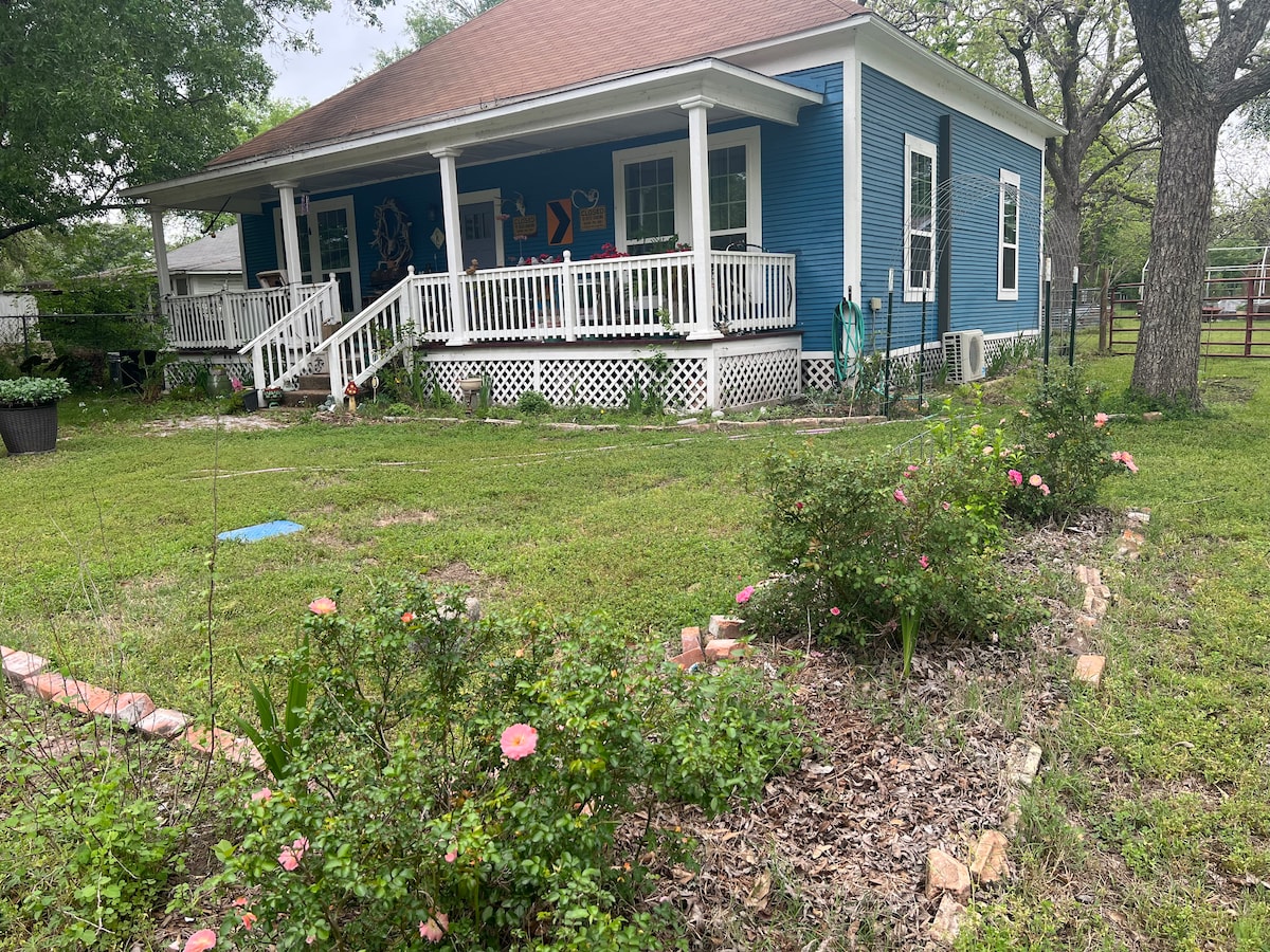 Come getaway to the country; the house is surrounded by acreage and has an area surrounding the house for your fur baby/ies; it is not fenced but there is a fenced 10x12 area. There is a stock pond in front of the house which is open for your fishing pleasure (Blue Catfish and Crappie). There is a large porch up front, perfect for enjoying the sunrise or sunset and spending time slowing the pace of life. Minutes from downtown and close to local attractions. Wifi (hot spot) and Roku provided.