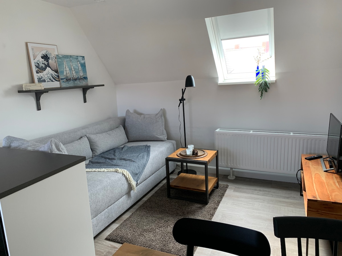 Árasán beag teolaí praiticiúil atá suite go foirfe in Warnemünde! Faoi thuilte le solas, san áiléar, tá sé ag tnúth le cairde Mhuir Bhailt - nach bhfuil ach 70 m ar shiúl - ach nach bhfuil fós ach 4 nóiméad go dtí cearnóg na heaglaise, croílár Warnemünde. Ós rud é go bhfuil an tolg ar fáil mar áit chodlata freisin, is féidir le suas le 4 dhuine fanacht ann - ach tá sé barrmhaith do bheirt. Maidir le páistí, táim sásta leaba agus cathaoir a chur ar fáil ar iarratas. Bíonn fáilte roimh mhadraí i m'áit i gcónaí!