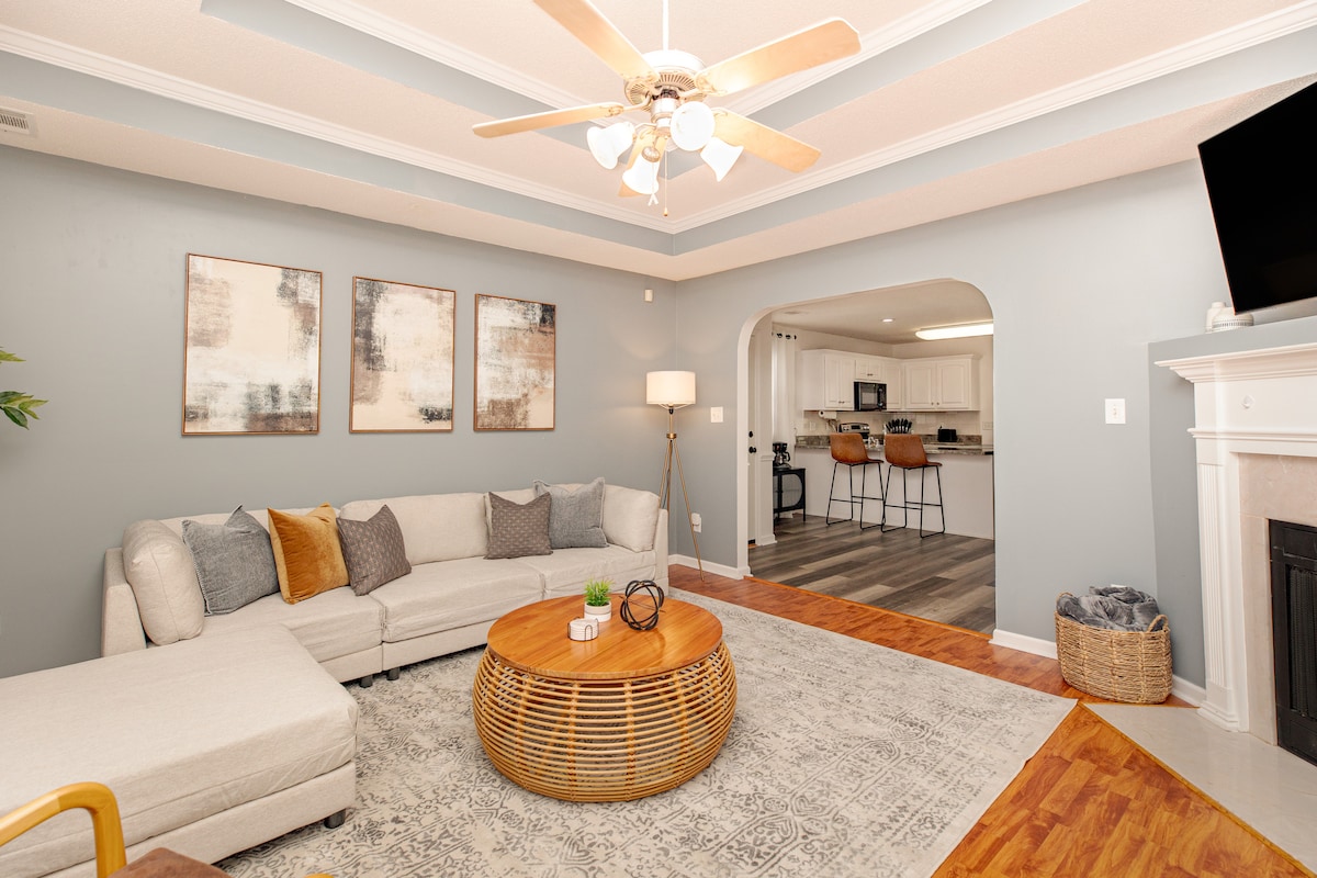 Tá an baile mór fairsing seo suite go foirfe in aice le príomh - stiall Warner Robins, le rochtain éasca ar I75, siopaí/bialanna, Robins Air Force Base, agus Houston Medical Center. Deartha go hálainn agus oiriúnach chun freastal ar do riachtanais go léir, beidh rochtain agat ar idirlíon ardluais, ar theilifíseáin chliste w/rochtain sruthaithe i ngach seomra, agus ar chúlchlós compordach atá foirfe do pheataí, do pháistí nó do ghreadadh. Déan áirithint anois le haghaidh fanacht compordach ag ár réadmhaoin "Sa Bhaile +1 ".