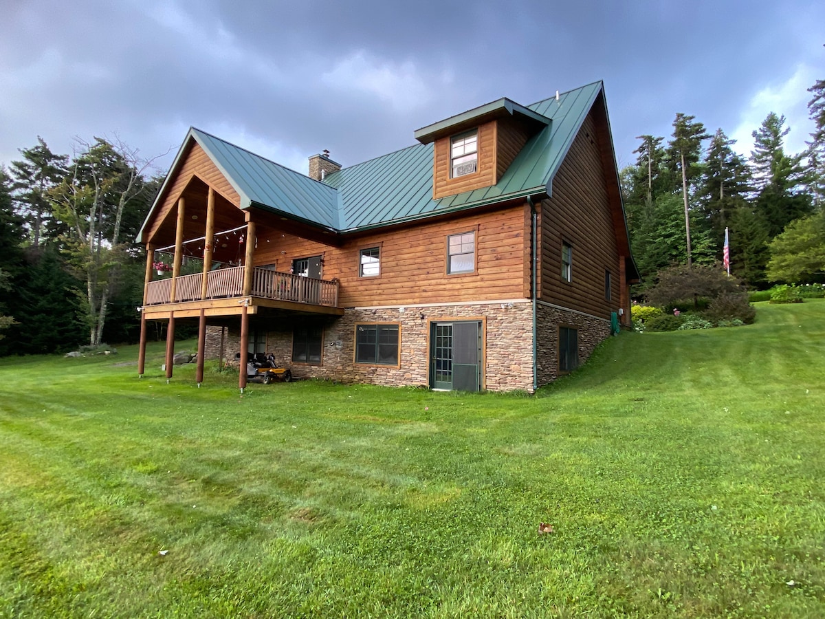 Fáilte chuig Cábán an Chaptaein Tom. Neadaithe i gcnoic Vermont le radharc álainn ar na Green Mts., cuireann an teach logála 2 stór, 2 sheomra leapa seo ar 44 acra sólás, suaimhneas agus príobháideacht ar fáil. Dhá sheomra folctha mhóra, cistin iomlán, teas lárnach, teallach gáis, lochán agus deic. Go hiontach do dhíograiseoirí spóirt an gheimhridh agus do dhaoine a bhfuil dúil mhór acu sa dúlra Wi - Fi maith, oiriúnach do mhadraí le táille. Déan googleáil agus léigh srianta covid Vermont, le do thoil, agus aontaigh go gcloífidh tú leo sula ndéanfaidh tú áirithint.