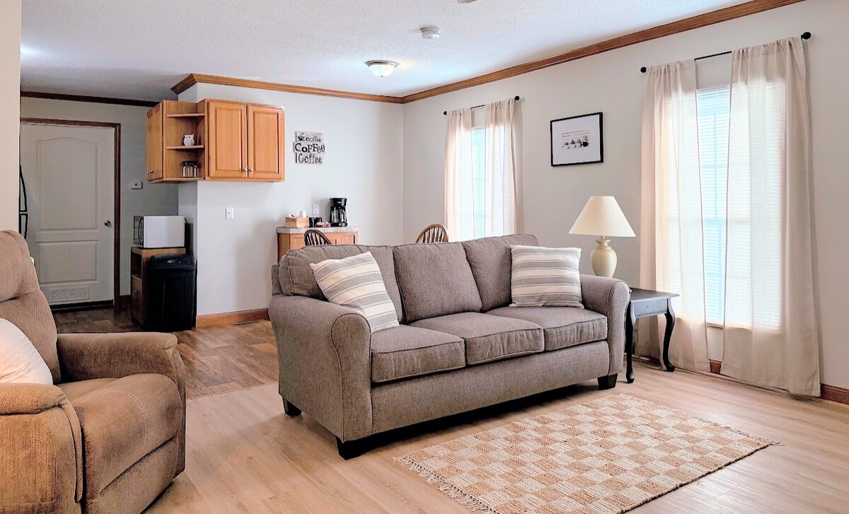 Is tearmann gleoite 2 - BR, 1 leaba folctha é an Teach Beag, atá oiriúnach do shaoire teaghlaigh nó do shaoirí gearra rómánsúla. Suite in áit shuaimhneach, tá rochtain éasca ar fáil sa teach cluthar seo ar nithe is díol spéise do dhaoine áitiúla: Lincoln Pioneer Village and Museum – 0.3 míle Downtown Owensboro – 10 míle Bluegrass Hall of Fame – 11 mhíle Newburgh, IN – 21 míle Domhan Saoire – 21 míle Bí ar do shuaimhneas agus lig do scíth sa bhunáit tí áisiúil chompordach seo. Oiriúnach do pheataí do mhadraí beaga faoi bhun 25lbs (Táille peataí: $ 50). Grianghraif ghairmiúla ag teacht go luath!