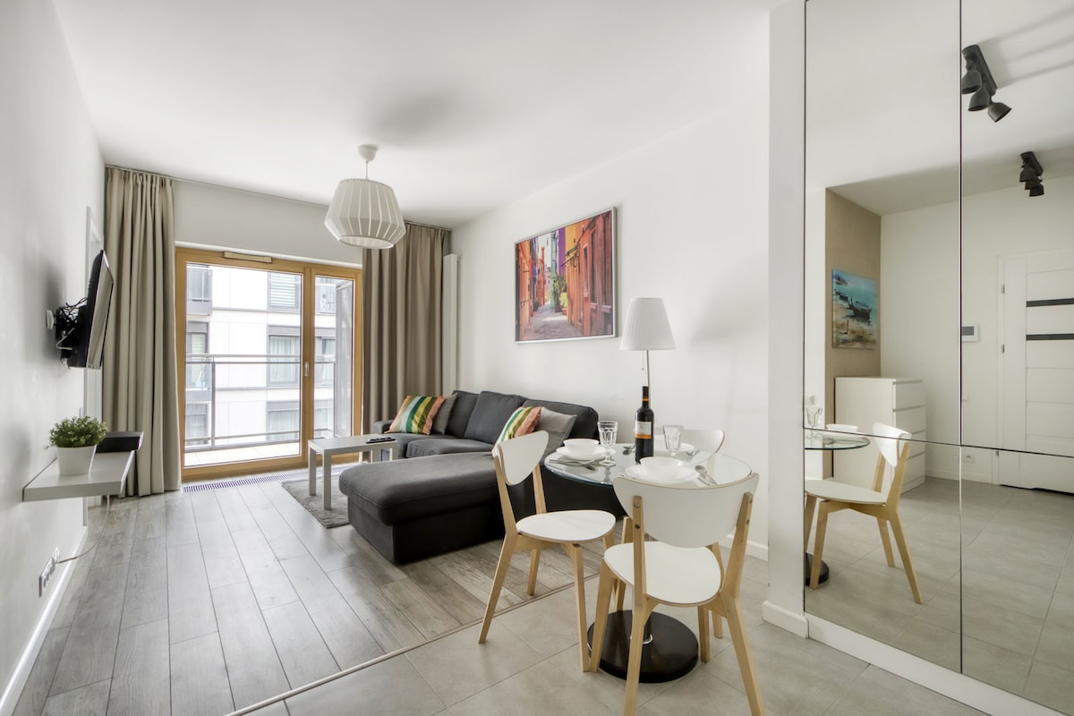 Árasán nua - aimseartha teolaí, compordach agus feistithe i lár na cathrach le bonneagar an - áisiúil. Foirfe do dhaoine gnó, do lánúineacha, do theaghlaigh agus do thaistealaithe. Gar do go leor siopaí caife, bácúis, beáir agus bialanna, lena n - áirítear veigeán, grósaera, stallaí séasúracha torthaí agus glasraí, páirc ghlas ina bhfuil clóis súgartha. In aice le stáisiúin rothar cathrach, stáisiún metro Politechnika, líonra tramanna, agus gan a bheith i bhfad ó lárstáisiún iarnróid agus bus, malls siopadóireachta Zlote Tarasy, Wars Sawa.