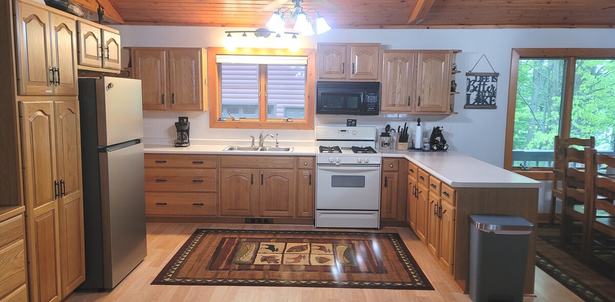 Teach cois locha urghnácha, rochtain phríobháideach ar loch! Tabhair leat do bhád féin, nó bain úsáid as duine dár gcuid féin! Lig do scíth ar an bpaitió scagtha agus tú ag breathnú ar fhiadhúlra sa loch. Beárbaiciú ar ár ngríoscán gualaigh, ansin bain sult as cluiche cúinne nó SpikeBall in aice leis an bpoll tine cois locha. Fág líne d'iascaireacht iontach chun tosaigh, nó brúigh na báid san uisce agus déan iniúchadh ar Birch Lake. Tar éis lá iomlán, téigh síos sa tobán te - atá ar fáil duit chun taitneamh a bhaint as ar feadh na bliana!