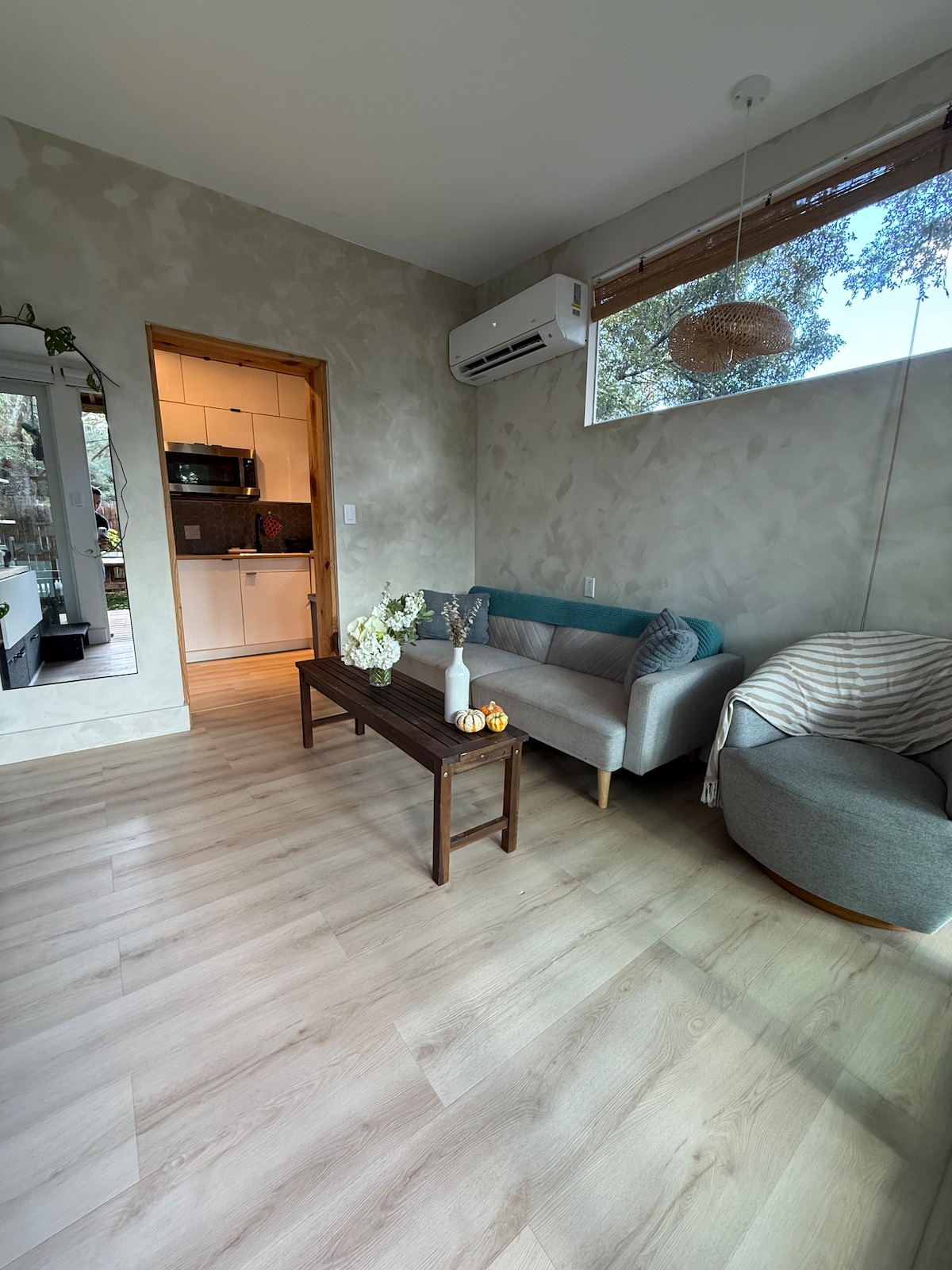 Fáilte chuig ár dteach coimeádáin nua-aimseartha, atá deartha go cúramach le haghaidh compoird, príobháideachta agus áisiúlachta. Tá a bhealach isteach féin ag an aonad príobháideach seo ina bhfuil seomra leapa amháin agus seomra folctha amháin, rud a fhágann go bhfuil sé foirfe do lánúineacha, do thaistealaithe aonair, agus d'aíonna gnó a bhfuil meas acu ar neamhspleáchas agus ar shuaimhneas. Taobh istigh, gheobhaidh tú seomra leapa compordach, cistin bheag le haghaidh béilí simplí, agus seomra folctha glan nua-aimseartha. Cibé acu an bhfuil tú ag obair go cianda nó ag sruthú na seónna is fearr leat, bain sult as Wi-Fi ardluais chomh maith le nasc tiomnaithe Ethernet