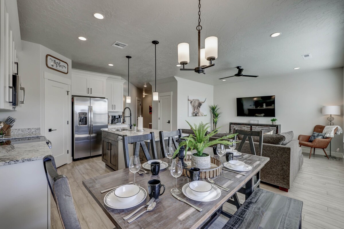 Cibé an díograiseoir lasmuigh thú, nó b'fhéidir nach bhfuil tú ach ag iarraidh taitneamh a bhaint as saoire dheas shuaimhneach sa ghrian the, tá sé ar fad sa teach úrnua seo! Tá sé maisithe go hálainn le troscán deireadh ard agus décor stylish. Tá an teach lán le gach rud a bheidh uait chun do scíth a ligean agus am iontach a bheith agat! Tá cuid de na radharcra is áille in Utah timpeall air agus níl sé ach 40 nóiméad ó Zion National Park. Bíodh spraoi agat leis an teaghlach ar fad ag an áit ghalánta seo. Abhainn leisciúil, linn snámha & tobáin the