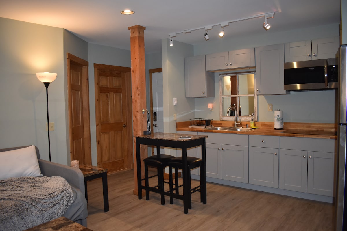 Árasán Príobháideach 2 Sheomra Leapa atá Athchóirithe go hiomlán le Déanaí agus atá Suite 1 Nóiméad Siúil ó Shráid Maine in Brunswick (Lár na Cathrach). Go hiontach do Dhuine ar Bith atá ag Iarraidh Cuairt a Thabhairt ar Brunswick nó é a Iniúchadh, lena n-áirítear Tuismitheoirí Bowdoin, Mic Léinn Ionchasacha, Saoireoirí. Tá urlár crua-adhmaid, cuntar eibhir, seomra suí agus cistin le leagan amach oscailte, cuisneoir dearg seanré, agus go leor fuinneog againn—go leor solais gréine! Tá vardrús beag sa dá sheomra leapa agus tá na dá leaba ina leapacha rí agus tocht cúr cuimhne an-chompordach iontu! Bain sult as!