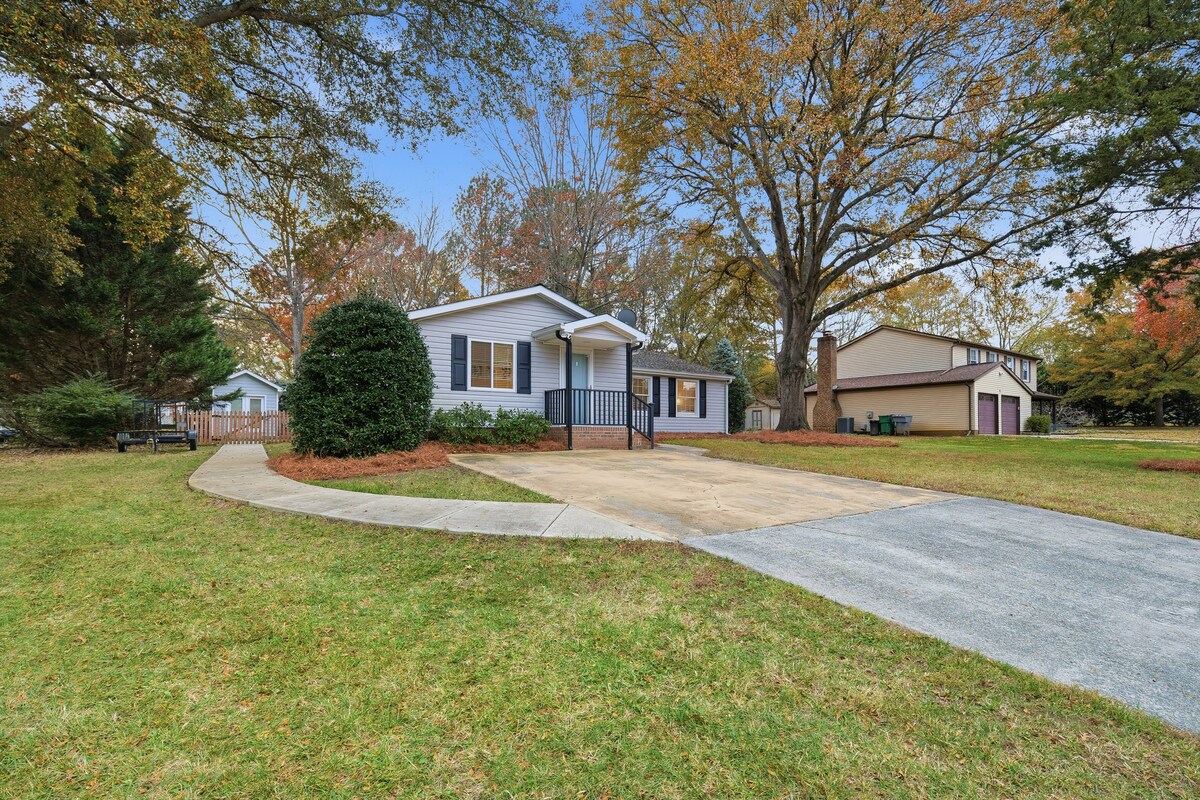 Tá an - áthas orainn fáilte a chur romhat agus roimh do naíonáin fionnaidh chuig ár 3 sheomra leapa aoibhinn agus 2 sheomra folctha iomlán 1300sq/ft bungaló díreach nóiméad ó Downtown Fort Mill lena sean - théamh scoile, seanré, caiféanna, búitíceanna, tithe tábhairne, ceol beo, páirceanna & séipéil. An tearmann milis foirfe ag deireadh an lae fámaireachta, ag ceiliúradh le teaghlach agus le cairde, tar éis an chluiche mhóir, nó nuair a bheidh an cruinniú gnó sin nó post nua agat. Cuirimid fáilte roimh gach ceann de na Míleata w lascaine 10%. Taisceadh peataí.