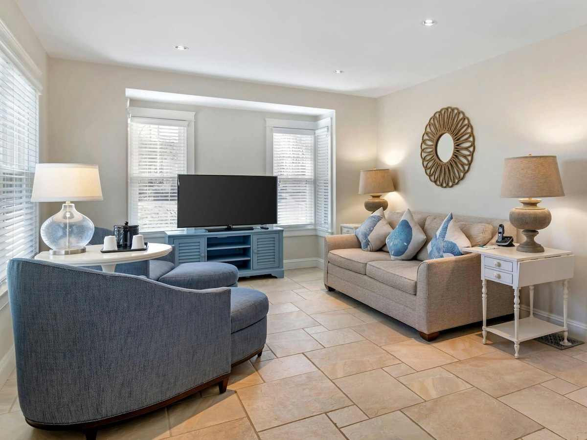 Anchor at Tideline: Tá "Eventide" lonnaithe ag Tideline Public House, seomra óil/clós trucail bia. Bain triail as bianna éagsúla agus beoir cheardaíochta, ansin téigh chuig do svuít ar an 2ú hurlár ina bhfuil leaba rí, seomra suite/limistéar teilifíse, seomra folctha príobháideach, agus limistéar caife/micreathonnach/cuisneora. Leis an suíomh seo is féidir rochtain éasca a fháil ar an White Mts & Seacoast. Eispéireas speisialta lóistín! Trucailí bia teoranta Nollaig - Márta. Tá leaba mór Sealy Memory Foam sa seomra seo agus tá spás ann do bheirt daoine fásta ar a mhéad.