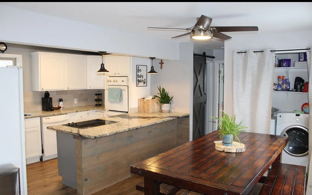 Located in the heart of downtown Montgomery City, this upstairs suite is just a short walk to local restaurants. It features new carpet, a renovated bathroom, full kitchen, washer/dryer—ideal for extended stays. Please note: not kid-friendly due to stairs and low windows. Light sleepers may hear nearby trains. Still, it's a cozy, convenient stay—we’d love to host you! Please note: our suite is located close to a train track. Ear plugs and a sound machine are provided.