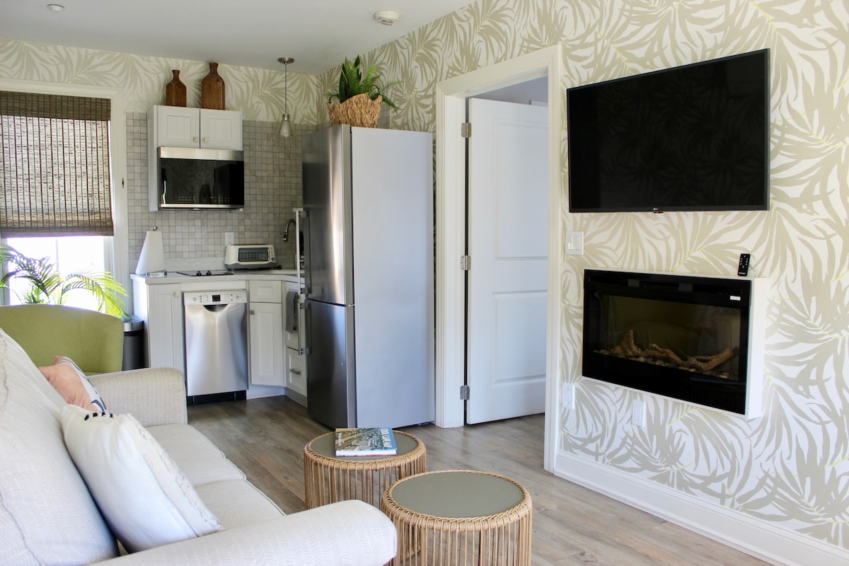 Lig do scíth i svuít mhór phríobháideach atá neadaithe ar 1.5 acra i gceantar beirithe den scoth in Cape Island. Tá tú ag fanacht i gCeanncheathrú Garda Tarrthála Cape May, athchóirithe le deic nua, paitió, seomra folctha, agus radhairc áille ar Shunpike Pond. Tá deic phríobháideach agus paitió, beárbaiciú, páirceáil, leaba Bhanríona, cistinéad le micreathonnán, cuisneoir, tóstaer agus beár caife san áireamh. Níl seomra leapa ar leith sa seomra suite. Tá sé ceangailte leis an bpríomhtheach. Tá clibeanna trá, cathaoireacha, agus scáth fearthainne san áireamh.