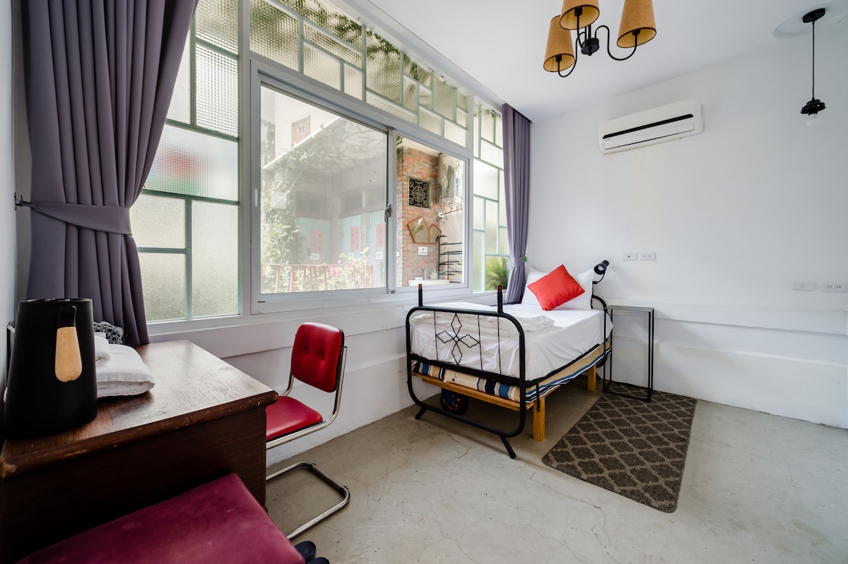 Soi X Tainan, seomra 301, leaba dhúbailte. I bhfolach i n - uaimh bheag Westgate, le gairdín poiblí 80 troigh chearnach agus le spásanna a chomhdhlúthú, tá sé oiriúnach do lánúineacha.