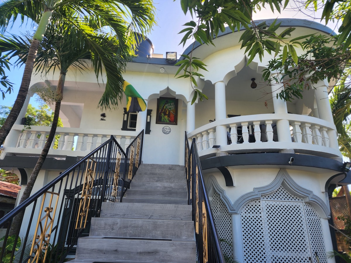 Fáilte chuig an taobh thiar. Taobh na hAille; chuig ár 5 theachín likkle in Negril. Tugaimid Teachín Soursop ar cíos thuas staighre seo agus tá leaba rí agus leaba dhá mhéid sa phóirse ann. Tá sé cosúil le héin nead suas ann sna crainn agus radhairc ar ais agus amach thar an yaad ar fad. Táimid gar do Ricks. Is féidir leat siúl ann i gceann 30 nóiméad. Tá sé thart ar 15 nóiméad sa charr go dtí trá seacht míle. Bí i d'fhéin barántúil i bParthas. gan aon pháistí agus gan aon aíonna neamhchláraithe le do thoil. Irie