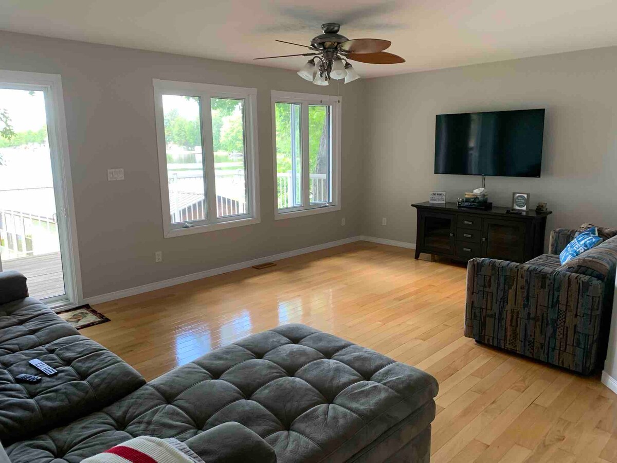 Lig do scíth leis an teaghlach ar fad ag an Lochta Suaimhneach Cois Uisce seo. Lochta nua - aimseartha agus nuashonraithe 2 sheomra leapa. Tóg isteach an radharc álainn ón dara deic stór, áit a bhfaighidh tú beárbaiciú agus neart suíochán. Tá an áit seo iontach do theaghlach chun éalú ar feadh deireadh seachtaine nó chun seachtain shuaimhneach a bheith acu. Tá trealamh linbh againn chun rudaí a dhéanamh níos éasca do na páistí beaga. Tá teacht díreach ar chosáin OFSC ón loch. Fiafraigh faoi phacáistí teachta mótair shneachta. Nó saoráidí iascaireachta oighir.