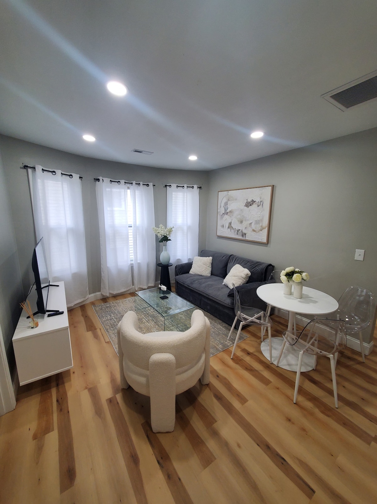 Bain sult as seiceáil isteach gan stró agus spás príobháideach 1,000 troigh cearnach ar an tríú hurlár inár dteach stairiúil Victeoiriach. Tá 2 sheomra leapa, seomra folctha, halla oscailte, agus áit chomhcheangailte ina gcónaí/bia/cistinéad (gan doirteal) san áireamh. Oiriúnach do pheataí, nuashonraithe agus compordach ó cheann ceann na bliana. Tá rochtain air tríd an staighre cúil; ní roinntear ach an bealach isteach/halla. Is d'aíonna amháin an 3ú hurlár agus an t - urlár uachtair. Díreach 5 nóiméad go I -91 agus Pike, 15 nóiméad go Northampton 15 nóiméad go Big E.