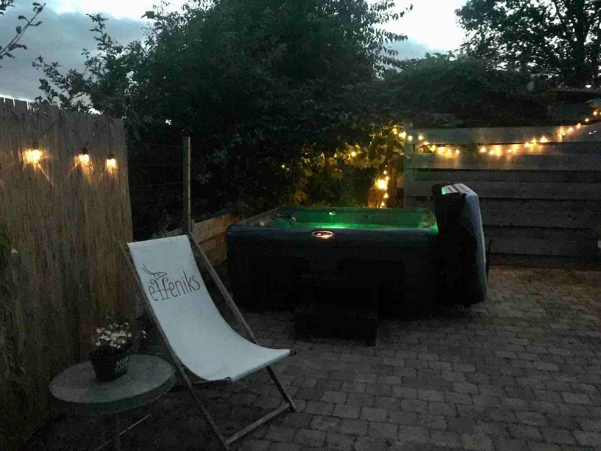 Fáilte go dtí ár dteach beag bídeach uathúil, curtha i leataobh i bhforaois phríobháideach ar imeall shráidbhaile gleoite na Freaslainne in Noordwolde. Tá an lóistín nua - aimseartha seo oiriúnach do lucht iarrtha na síochána agus do dhaoine a bhfuil dúil acu sa dúlra. I rith an tsamhraidh, bain sult as do ghairdín príobháideach fairsing ina bhfuil áit shuíocháin, vearanda agus ámóg i measc na gcrann. I rith an gheimhridh, is féidir leat suí go compordach taobh istigh den sorn adhmaid a théann an spás in am ar bith. Tá an teach beag bídeach dlúth ach feistithe leis na compord go léir!