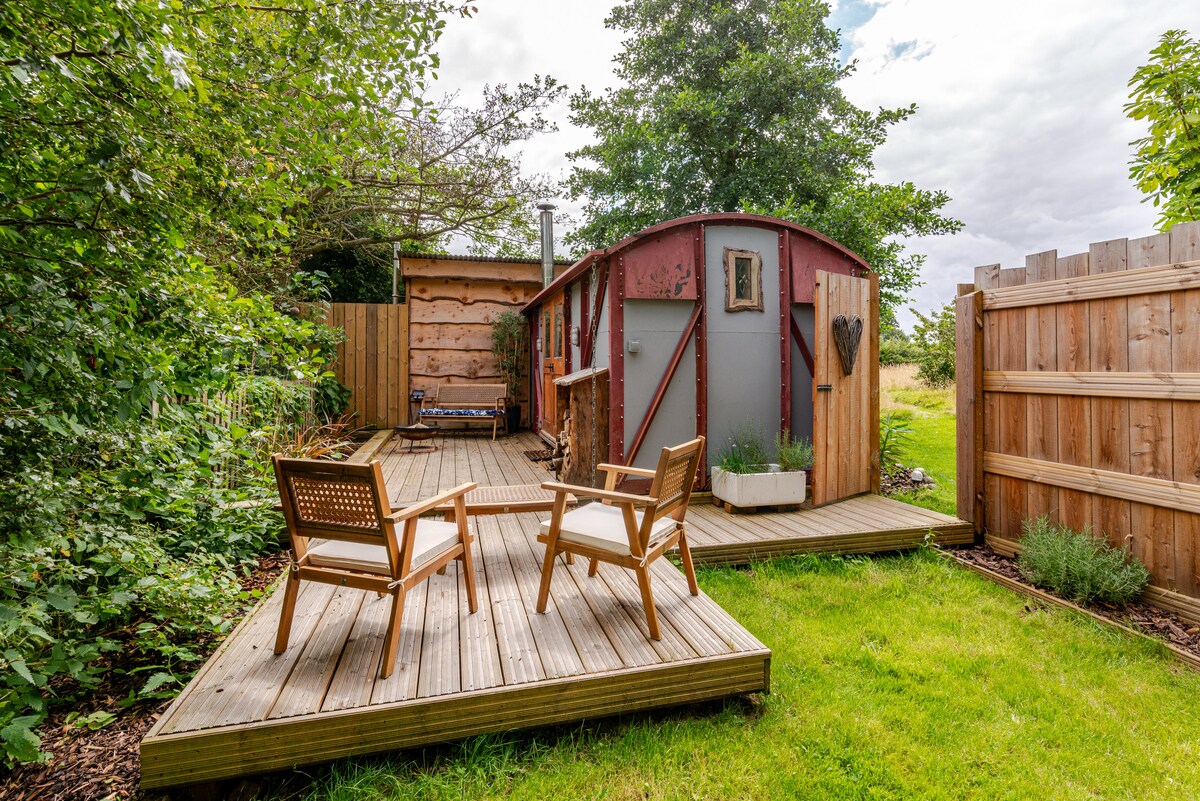 Is tearmann grámhar lámhdhéanta, galánta agus cosúil é an Traein Stáin, agus é ceangailte isteach i ngairdín tuaithe, ar a lána tuaithe síochánta. Níl ach 20 nóiméad ó chósta iontach North Norfolk, agus le siúlóidí áille agus tithe tábhairne tuaithe timpeall, is féidir leat iniúchadh a dhéanamh ar an gceantar áitiúil sula dtiocfaidh tú ar ais chun deoch a bheith agat i do ghrian - ghaiste príobháideach féin nó cuachta suas ar an tolg os comhair an dóire adhmaid. Tá an Traein Stáin foirfe do shaoire ghearr rómánsúil lánúine nó do shos suaimhneach do dhuine amháin.