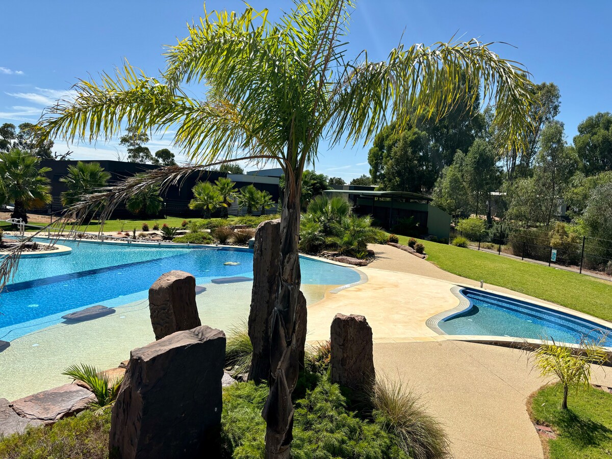 Siúlóid 5 nóiméad chuig Siúlóid Abhainn Campaspe a leanann an Abhainn Campaspe meandrach feadh cosán/rotharbhealach séalaithe a sholáthraíonn siúlóirí, bogshodair agus rothaithe trí thalamh coille nádúrtha. Críochnaíonn an tsiúlóid ag Gairdíní Hopwood i gcroílár Chalafort stairiúil Echuca (siúl 20 nóiméad isteach san ionad, turas rothair 10 nóiméad). Féinseiceáil isteach le heochracha curtha ar fáil i dtaisce eochracha, páirceáil lasmuigh den tsráid, Plean oscailte baileach geal ina bhfuil 3 bdrm, 1 seomra folctha agus leithreas ar leith.