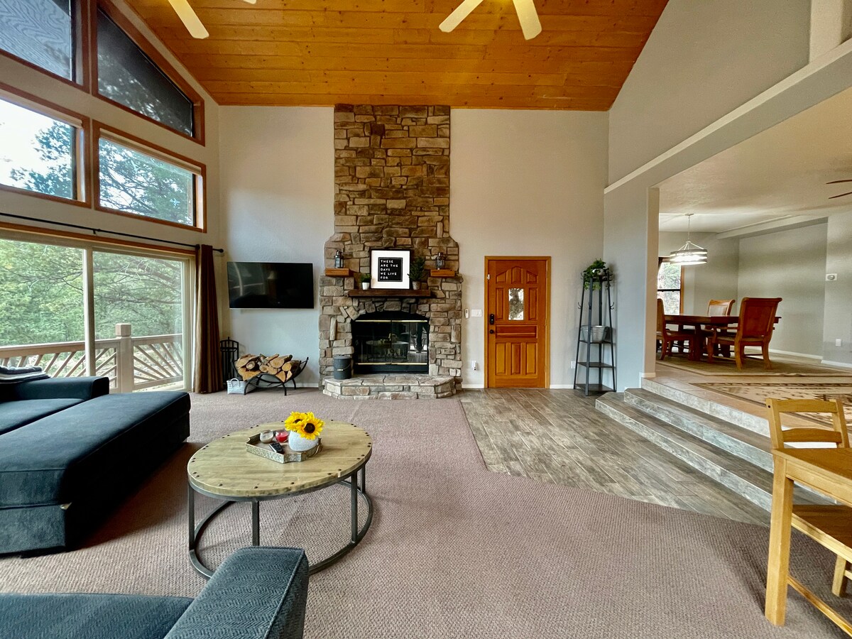 Tar am a chaitheamh sna Pines leis an teaghlach ar fad nó suíomh pearsanta le haghaidh 2. Cábán iontach 2 sheomra leapa le coillte domhain, ach díreach míle ó Downtown Pine. Tá leaba rí fíorchompordach ag MBR & 50" HD Roku TV. Tá leaba iomlán ag an dara bdffee le topper compordach, spás oibre, printéir, agus 42" HD TV. Tá LR ag dó adhmaid FP, 4 stól beáir & teilifíseán mór extraord " HD le beár fuaime. Tá gach rud is gá duit a fuip suas béilí is fearr leat sa chistin. Spás lasmuigh le beárbaiciú gáis, bia, suíocháin do chách.