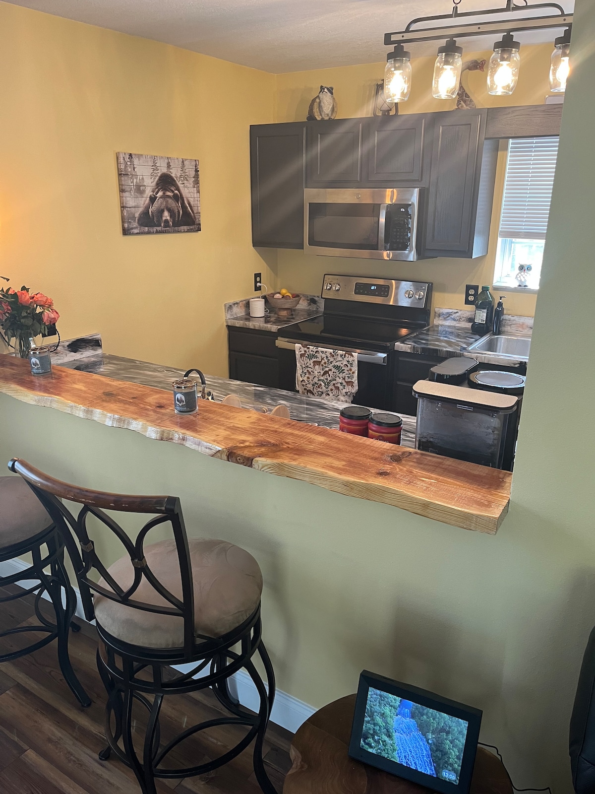 Tá Teachín KT suite díreach nóiméad taobh amuigh de theorainneacha na cathrach de Downtown Live Oak agus Abhainn álainn Suwannee. Má tá tú ag dul tríd le haghaidh gnó nó chun taitneamh a bhaint as an gceantar, tá súil agam go mbeidh lóistín ár dteachín níos sásúla ná mar atá. Tá leaba bhanríona thíos staighre chomh maith le banríon sa lochta, le neart piliúr agus blaincéad breise do do chompord. Tá caife, tae & uisce i mbuidéil san áireamh. Bain sult as bheith ag greadadh agus tú ar do shuaimhneas sa luascán nó ina suí ag tine champa