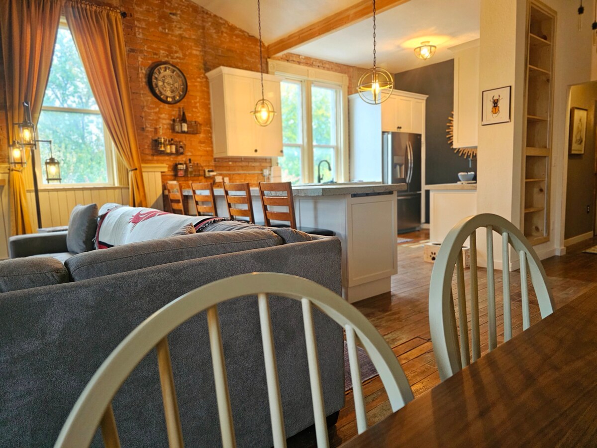 Is é an Brick Loft áit a gcomhlíonann an stair charm. Tógtha in 1890 bhí sé ina bhanc ó 1893 agus ina dhiaidh sin bhí sé ina Eleanors clúiteach Corner Saloon. Suite go lárnach idir Gleann LC agus Pullman/Moscó feadh Mhórbhealach álainn Palouse, is suíomh iontach é d'imeachtaí Cougars nó Vandals, ag glacadh grianghraf den Palouse máguaird, nó taitneamh a bhaint as caitheamh aimsire ar na haibhneacha Snake agus Clearwater. Beidh fanacht compordach uathúil agat ina mbeidh na saoráidí go léir a theastaíonn uait ag an Lochta Brící.