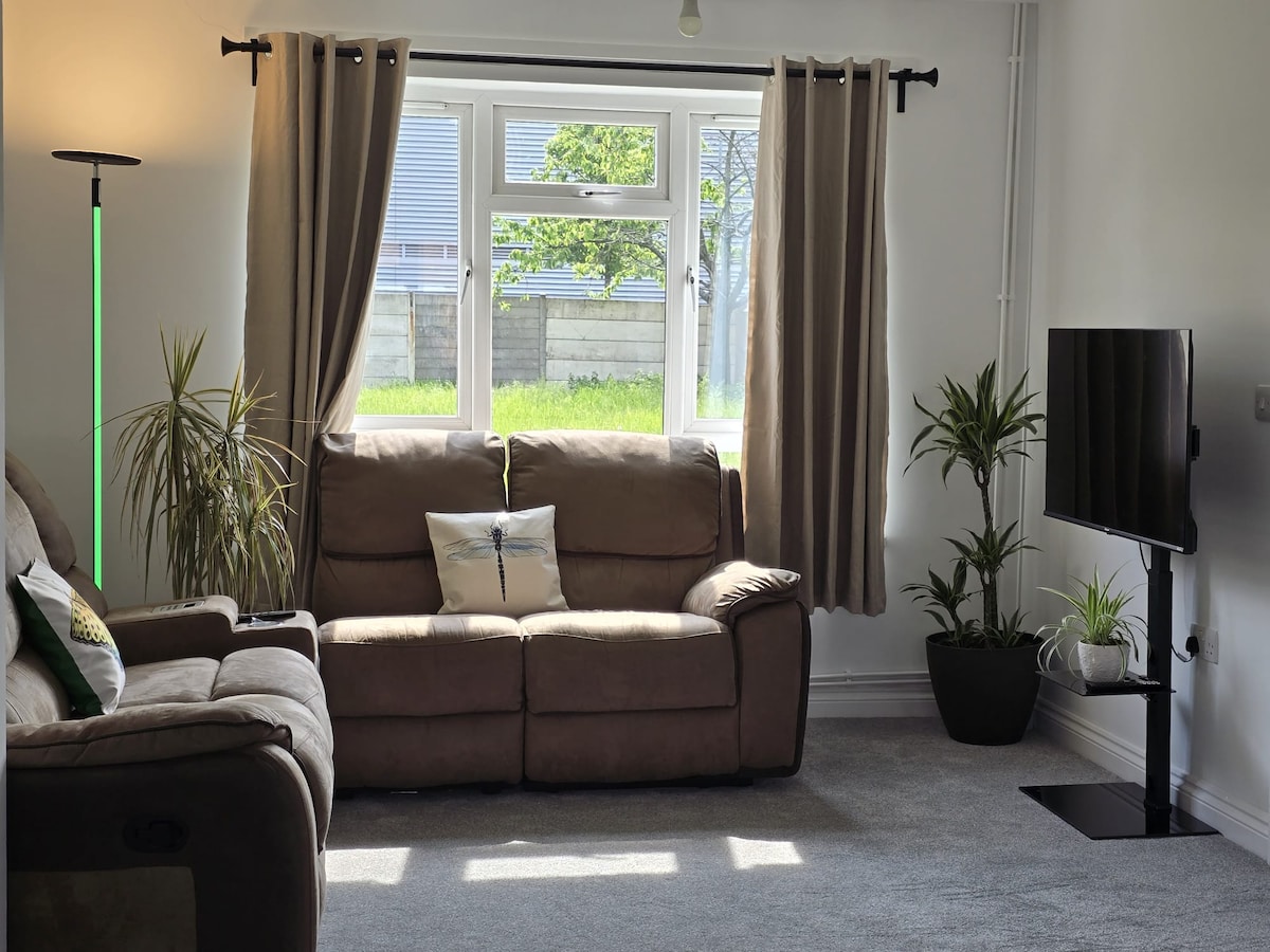 Árasán compordach, nua - athchóirithe, le páirceáil saor in aisce lasmuigh den bhóthar do charr amháin (+ páirceáil ar bhóithre saor in aisce), gairdín príobháideach mór agus rochtain thapa ar Londain le stáisiún traenach níos lú ná 10 nóiméad siúil. Lig do scíth go maith ar an rí agus ar leapacha singile lánmhéide. Tá an chistin feistithe go hiomlán agus seomra maireachtála/bia mór compordach le pacáiste iomlán Sky. Is siúlóid ghearr 4 nóiméad í an tsráid ard ina bhfuil siopaí caife, bácúis, earraí grósaera, bialanna agus tithe tábhairne. Bricfeasta simplí curtha ar fáil don chéad 2 oíche (uibheacha, arán, bainne, pónairí)