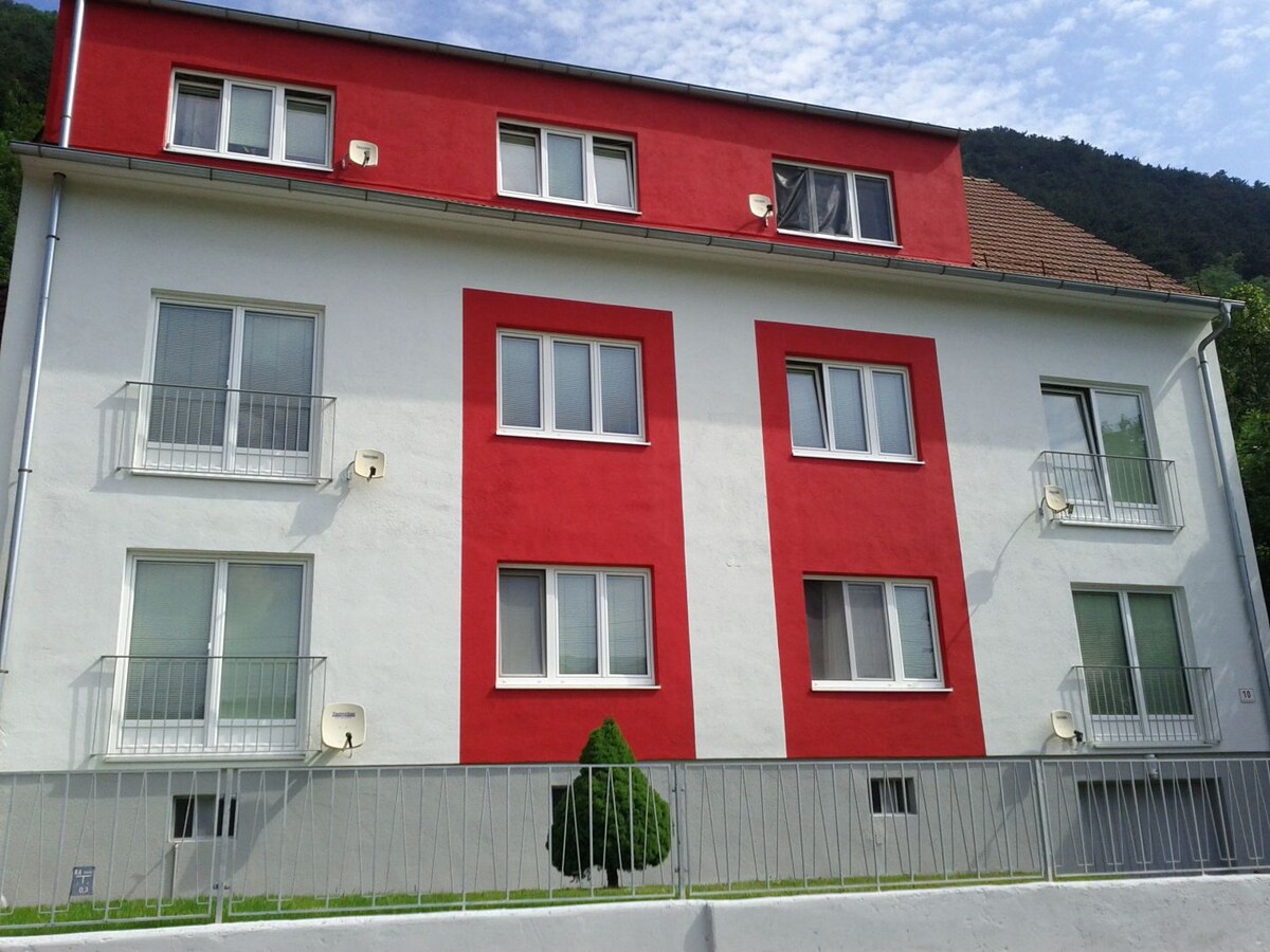 Bain sult as an Semmering in árasán rómánsúil 35m2! Is éard atá san árasán ná seomra suí mór ina bhfuil leaba bhanríona, 1 seomra leapa ina bhfuil leaba bhuinc do 2 sheomra leapa, cistin lánfheistithe, seomra folctha ina bhfuil folcadán, teilifíseán suí, Wi - Fi agus páirceáil saor in aisce. I díreach siúlóid 3 nóiméad is féidir leat an t - ionad nó an t - ardaitheoir sciála Hirschenkogel a bhaint amach, agus is é sin an fáth a bhfuil an t - árasán oiriúnach do shaoire sciála agus clársciála sa gheimhreadh mar gheall ar a shuíomh, nó saoire fánaíochta sa samhradh.