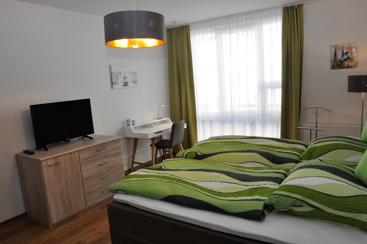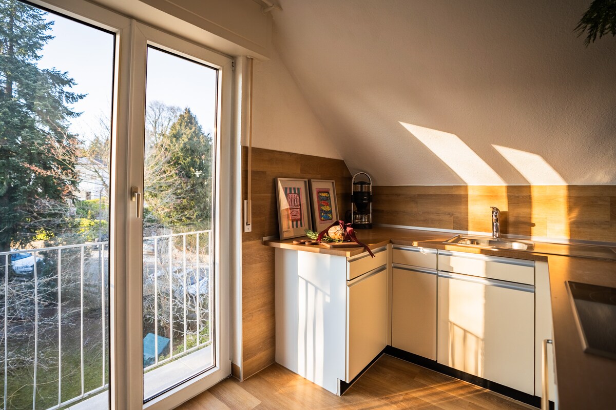 Árasán 3 sheomra atá suite go ciúin agus teolaí (68 méadar cearnach), atá feistithe go hiomlán, ar iarratas le spás páirceála saor in aisce; seomra cithfholcadáin, balcóin (8 méadar cearnach), 12 nóiméad go lár na cathrach, nasc bus, 200 m go REWE. Tá óstaigh ina gcónaí ar leithligh san fhoirgneamh céanna agus dá bhrí sin is féidir teagmháil a dhéanamh leo ar an láthair. Stáisiún luchtaithe poiblí sa chomharsanacht. Árasán ciúin compordach 3 sheomra (68 méadar cearnach); balcóin (8 méadar cearnach); gan ach siúlóid 12 nóiméad ó lár na cathrach, Stad bus in aice láimhe; ollmhargadh 200m, páirceáil in áirithe ar fáil.