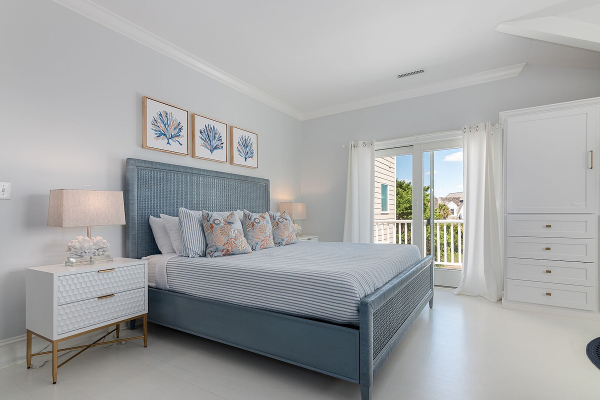 Beautiful Oceanview Queen-sized bedroom, large windows to ocean views!!! Two big windows have ocean views southwards. Enjoy our private walkway to the beach! Begin with our complimentary Welcome to Tiki Cocktail. Walk to Tiki Bar - just 200 yds; the famed Carolina Beach Boardwalk with loads of activities, and fun safe nightlife. Our coffee bar has big selection of coffees & teas and daily fresh fruits, cookies or muffins. Relax on large wrap decks. Queen bedroom has shared bathroom.