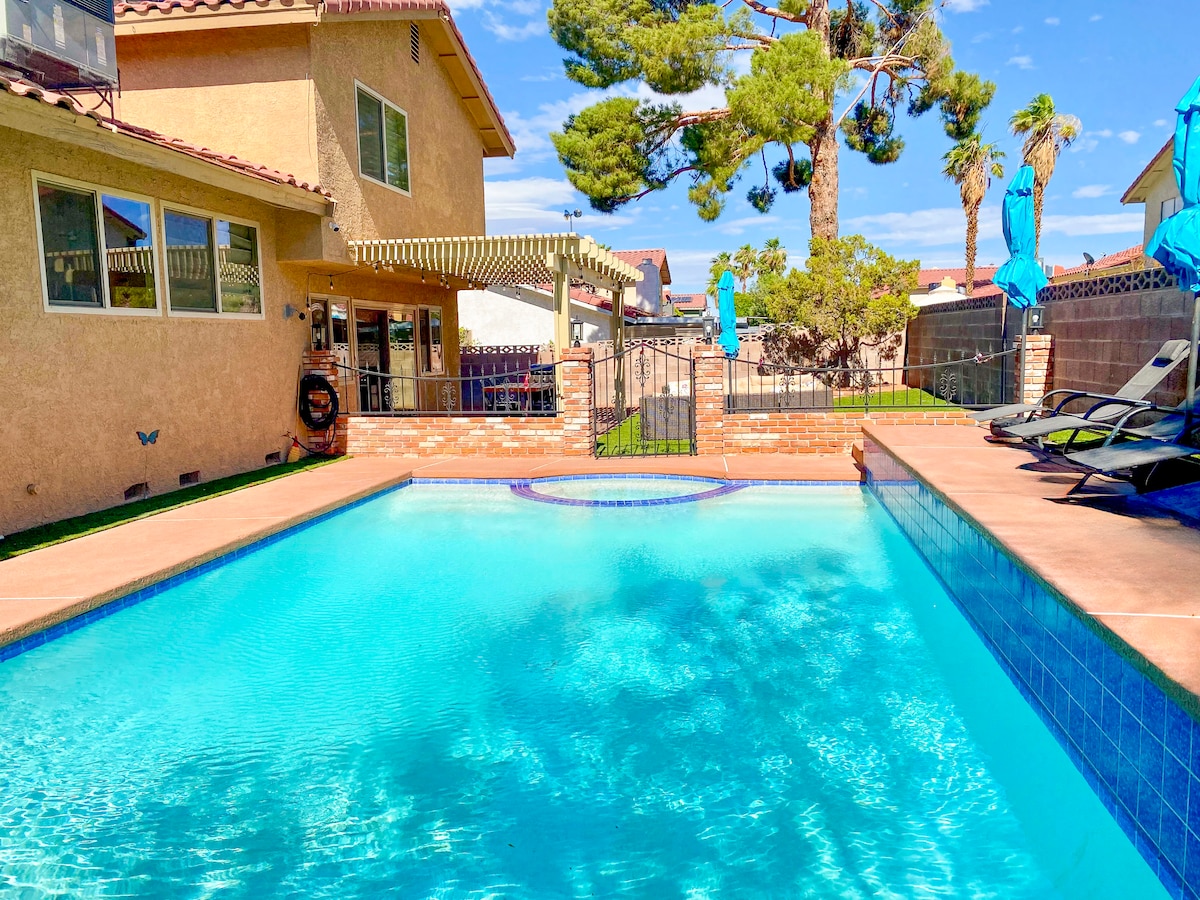 Éalú ó Vegas atá oiriúnach do theaghlaigh díreach 15 nóiméad ó The Strip, Downtown, Fremont, Arts District, Convention Center & Speedway - le rochtain thapa saorbhealaigh! Bain sult as linn snámha gréine (samhradh), Spa, gríoscán beárbaiciú, bia lasmuigh, 3 sheomra folctha iomlána!, agus clós álainn tírdhreachaithe. Taobh istigh: leagan amach oscailte le solas iontach, gloine dhaite, luchtaire feithiclí leictreacha, cluichí boird, teilifíseáin chliste, agus go leor spáis. In aice le Red Rock, Mt. Charleston, páirceanna, siopadóireacht & bia. Lig do scíth agus bíodh spraoi agat - beidh dúil mhór agat anseo!