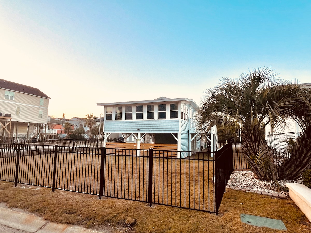 Teach trá ardaithe 4 sheomra leapa álainn nua - athchóirithe nach bhfuil ach 2 bhloc ón aigéan. Neart spáis le haghaidh siamsaíochta lasmuigh ina bhfuil limistéar mór linne snámha timpeallaithe ag bosa agus rochtain ar riasc salainn le haghaidh iascaireachta. Níl ach chuimhneacháin ar shiúl ó shiopadóireacht Barefoot Landing, galf, agus siamsaíocht in aghaidh na hoíche. I gcomaoin aíonna níos óige, níos óige ná 25, beidh $ 1500 ag teastáil roimh an tseiceáil isteach agus cuirfear 2 thagairt go díreach chuig gkladd@comcast.net ó dhaoine nach bhfuil níos sine ná 25 bliana d'aois.