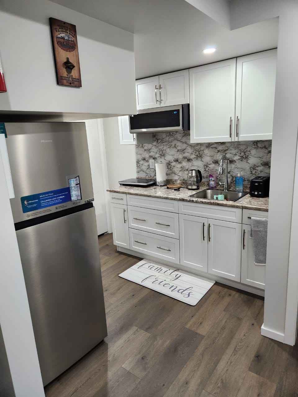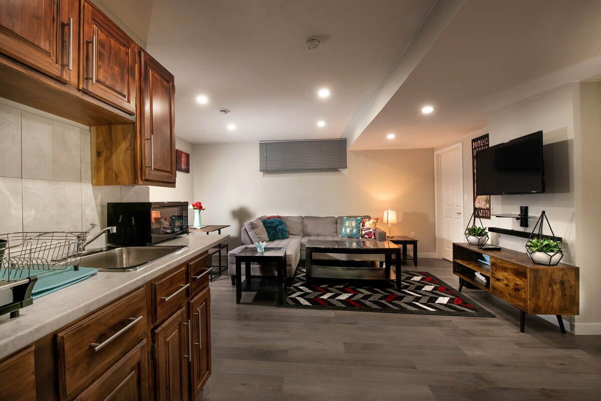 Suite úrnua íoslaigh aon seomra leapa ina bhfuil áit suí fhairsing agus bealach isteach príobháideach atá suite soir ó dheas ó Winnipeg, thart ar 15 nóiméad ó lár an bhaile, 5 nóiméad ó iompar poiblí. In aice le hionad siopadóireachta, banc, clinic agus ionaid aclaíochta. Tá páirceáil sa chabhsa nó ar an tsráid ar fáil. Tá rochtain ag aíonna ar idirlíon ardluais, bealaí beo ar Smart 60" TV agus físeáin príomh - Amazon nó YouTube. Cistin iomlán feidhmiúil le micreathonnán agus cuisneoir. Is féinseiceáil isteach agus amach é seo ag an am oiriúnach.