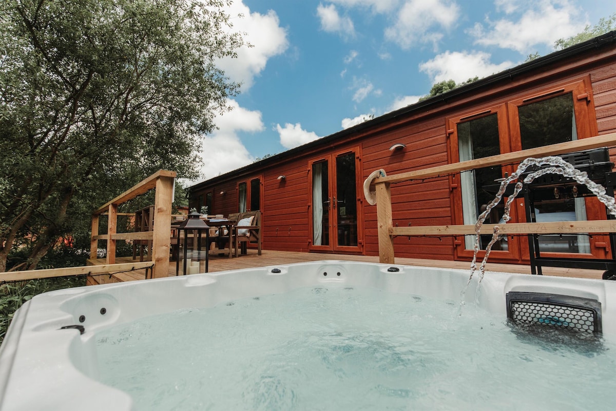 Tá ár gcábán Logála suite i gcroílár Raon Clwydian, ag breathnú amach ar Moel Famau. Agus é suite i d'aonar, tá an cábán eisiach seo os cionn na habhann, le radhairc sléibhe. Suigh siar agus bain sult as do thráthnónta sa tobán te ar an deic phríobháideach, déan iniúchadh ar fhlúirse na gcosán, bain sult as deoch nó béile den scoth san iliomad tithe tábhairne agus bialanna áitiúla. Just a scíth a ligean agus do scíth a ligean agus taitneamh a bhaint as an tuath welsh.