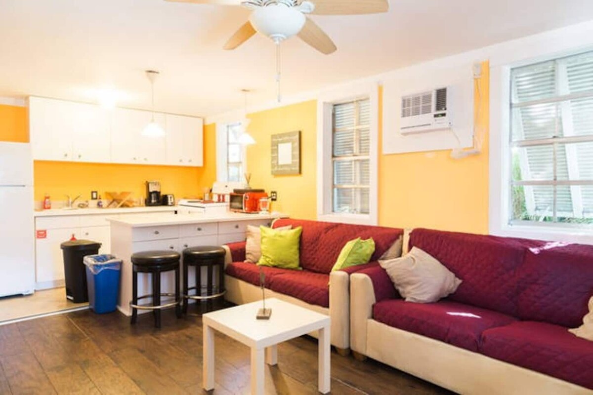 Fáilte go Duval Corner! Árasán aon seomra leapa atá nuashonraithe go hálainn i gcroílár Downtown Key West. Tá an tearmann dara hurlár seo foirfe do thaistealaithe ar mian leo a bheith ina gcéimeanna uaidh ar fad. Laistigh d'achar siúil chuig nithe is díol spéise íocónacha amhail an Southernmost Point, The Ernest Hemingway Home, agus Mallory Square, chomh maith le háiteanna itheacháin amhail Blue Heaven, 7 Fish, agus Louie's Backyard; is é Duval Corner an bonn is fearr do d'eachtra Key West.