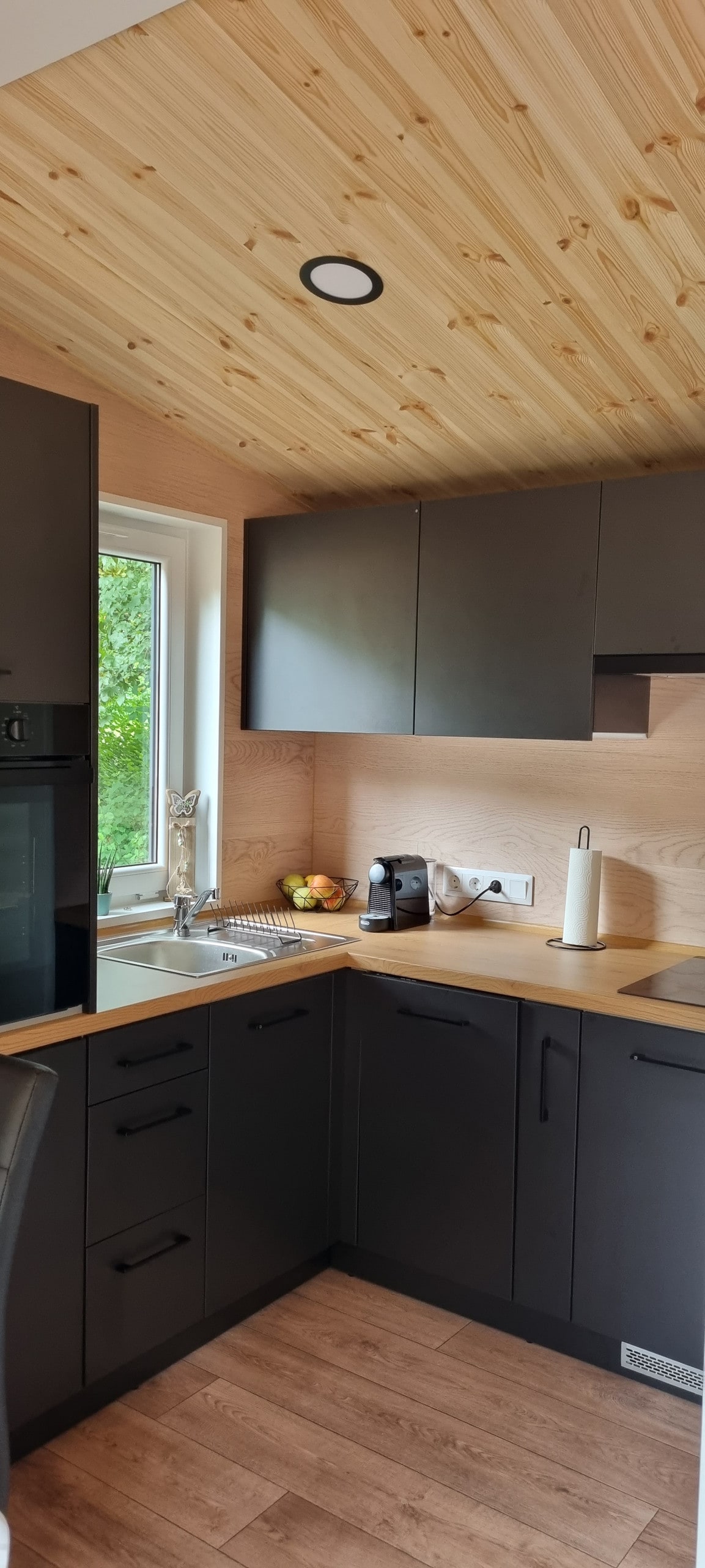 Tá táille sheirbhíse d'aíonna Airbnb san áireamh sa phraghas anois! Téann an stiúideo mór seo i bhfeidhm ar a struchtúr dín nochta, rud a chruthaíonn atmaisféar an - teolaí. Tá aeráil bhuan sa teach adhmaid. Sa seomra leapa, cinntíonn leaba mhór uisce (2 m x 2.20 m) codladh maith. Cuireadh an réadmhaoin ar fáil go grámhar ina haonar. Tá an chistin beag ach tá sí feistithe go hiontach. Ag griolladh agus ag déanamh bolg le gréin sa ghairdín. Is féidir an tsauna lasmuigh, an 2 rothar leictreach, an Thule Cab2 agus an Wallbox do ghluaisteáin leictreacha a chur in áirithe astu féin.