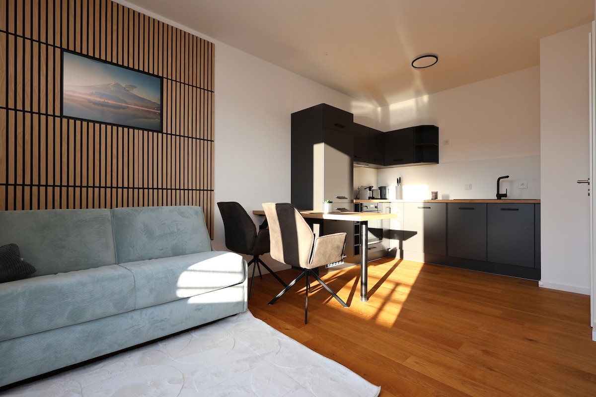 City Country River: Comhcheanglaíonn ár n-árasán saoire nua-athchóirithe compord nua-aimseartha le suíomh idilliúil. Tugann an troscán ardchaighdeáin agus an chistin úrnua lánfheistithe ina bhfuil láthair itheacháin fhairsing cuireadh duit taitneamh a bhaint as béilí comhroinnte agus tráthnóna suaimhneacha. Agus tú timpeallaithe ag an dúlra, beidh síth agus suaimhneas agat ach beidh tú fós nasctha go maith: níl an S-Bahn ach 5 nóiméad ar shiúl, rud a thabharfaidh go lár chathair München thú i 30 nóiméad nó i gcarr go teorainneacha na cathrach i 15 nóiméad.