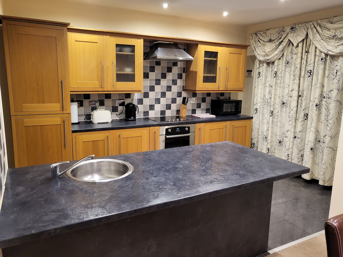 Is imfhálú duilleach í Páirc an Gharráin atá suite i Toxteth, in aice leis an gCeathrú Sheoirseach. 5 nóiméad ón mbaile agus ó Pháirc cháiliúil Sefton. Ar Lark Lane in aice láimhe tá raidhse bialanna, tithe tábhairne, caiféanna agus siopaí le taitneamh a bhaint astu. Tá leaba san iarscríbhinn ar féidir í a úsáid mar shár - rí nó scaoileann sí isteach in dhá leaba shingil. Tá seomra cithfholcadáin ensuite, cistinéad agus gairdín daingean príobháideach ann le hithe/ól. Cuirtear teilifís agus Wi - Fi ar fáil. Tá páirceáil lasmuigh den tsráid agus béilí atá cócaráilte sa bhaile ar fáil.