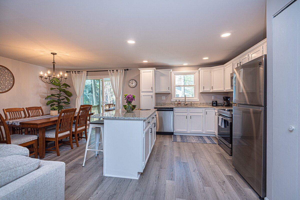 Bíodh spraoi agat leis an teaghlach ar fad ag an áit ghalánta seo. Teach baile mór 2 leaba, 2 1/2 sheomra folctha nua - cheannaithe agus athchóirithe go hiomlán. Bain sult as sunsets álainn ag breathnú amach ar an gcanáil álainn. Tá urlár vinile só darach éadrom nua sa teach ar fud an chéad urláir, an phríomhsheomra leapa agus na seomraí folctha. Cairpéad sa dara seomra leapa. Críochnaíonn caibinéid nua croiteora bháin, cuntair grianchloiche agus fearais chruach dhosmálta an chistin álainn seo. Inneall níocháin agus Triomadóir san aonad.