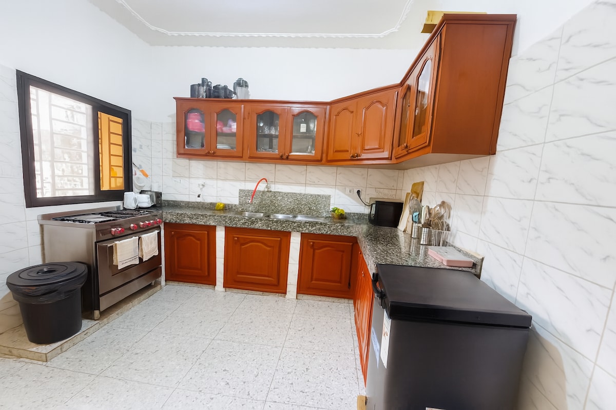 Fáilte go dtí ár n-árasán cois bóthair slán inrochtana go héasca in Douala. Anseo, cinntítear do shuaimhneas intinne a bhuí le garda 24 uair an chloig agus córas monatóireachta cianda. Tá seomra suí agus seomra leapa le teilifís, cistin lánfheistithe, Wi-Fi gan teorainn agus gineadóir san árasán. Is féidir leat taitneamh a bhaint as limistéar lasmuigh chun do scíth a ligean freisin. Dá bhrí sin, is áit shábháilte, chompordach agus mhisniúil í do d'fhanacht.