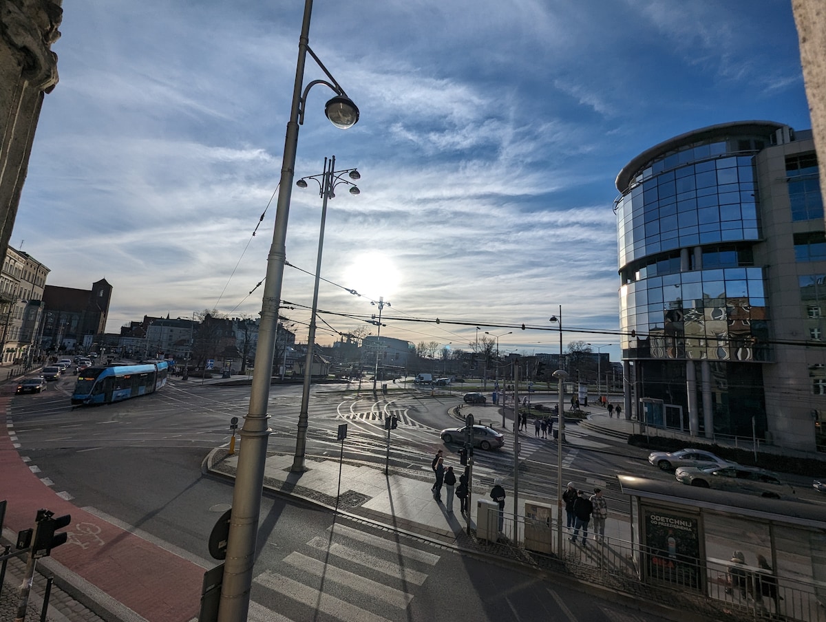 Árasán dhá sheomra leapa compordach nua - aimseartha atá ar fáil ar cíos go laethúil, le radharc ar an Seanbhaile agus ar Abhainn Odra, atá suite i bhfoirgneamh cónaithe i ngar do Chearnóg Mhargaidh Wrocław (650m). Ideal le haghaidh tréimhsí fanachta gearrthéarmacha nó fadtéarmacha do lánúineacha, do theaghlaigh nó do ghrúpaí cairde (suas le 4 dhuine). Is féidir é a chomhcheangal le roinnt árasán eile in aice láimhe freisin. Tá páirceáil faoi thalamh in áirithe ar fáil ar tháille bhreise freisin.