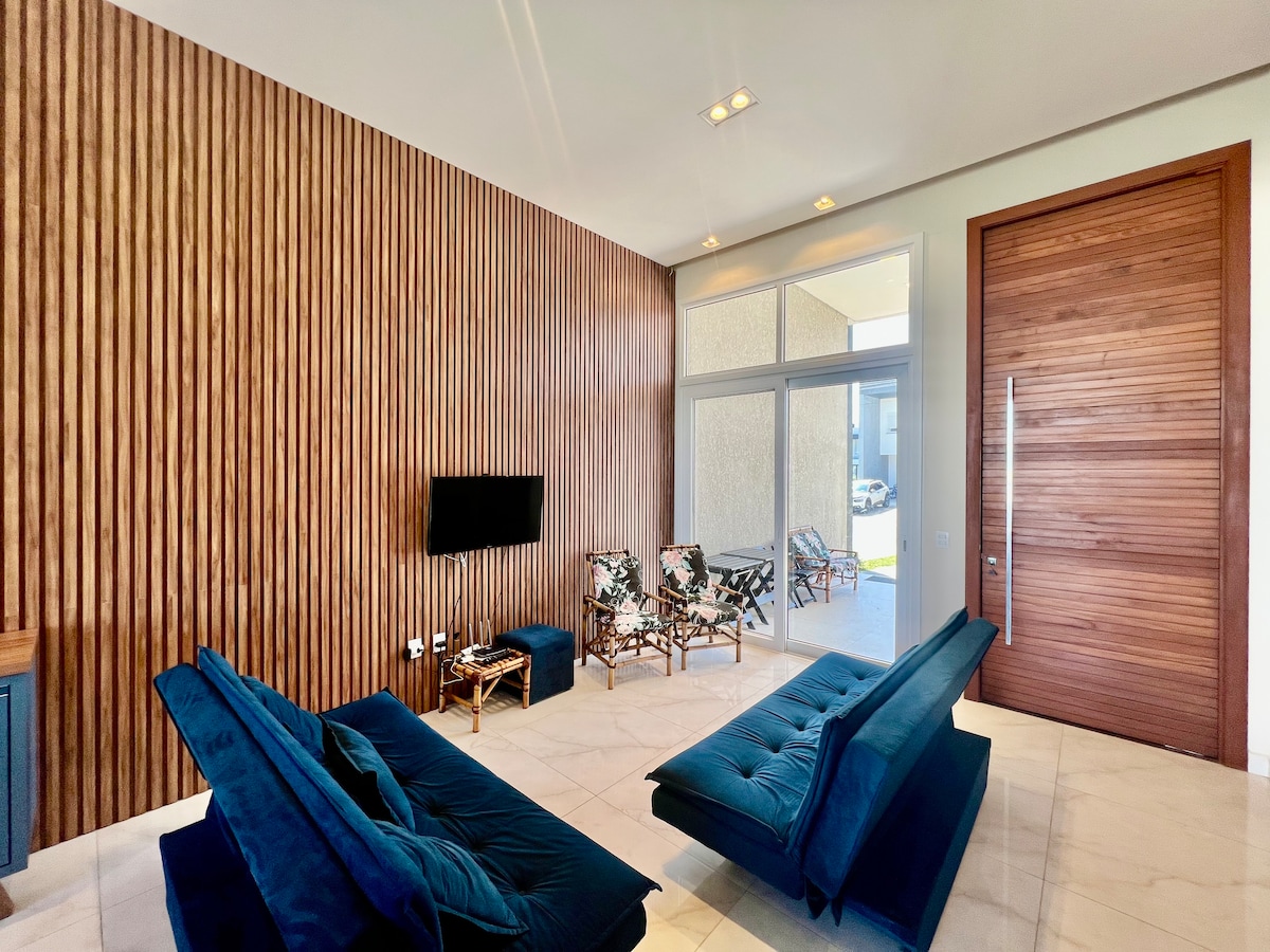 Is mór an pléisiúr é an teach beag bídeach. Spás atá deartha ag an Ailtire Francisco Pinto , le maireachtáil ann - ar an trá - eispéireas uathúil ar fholláine, ar chompord agus ar chompord. Tá an seomra suí fairsing, geal agus is féidir é a chur isteach go hiomlán sa limistéar lasmuigh. Tá sé suite taobh istigh den Árasán Gorm, le struchtúr iomlán na n - aíonna.