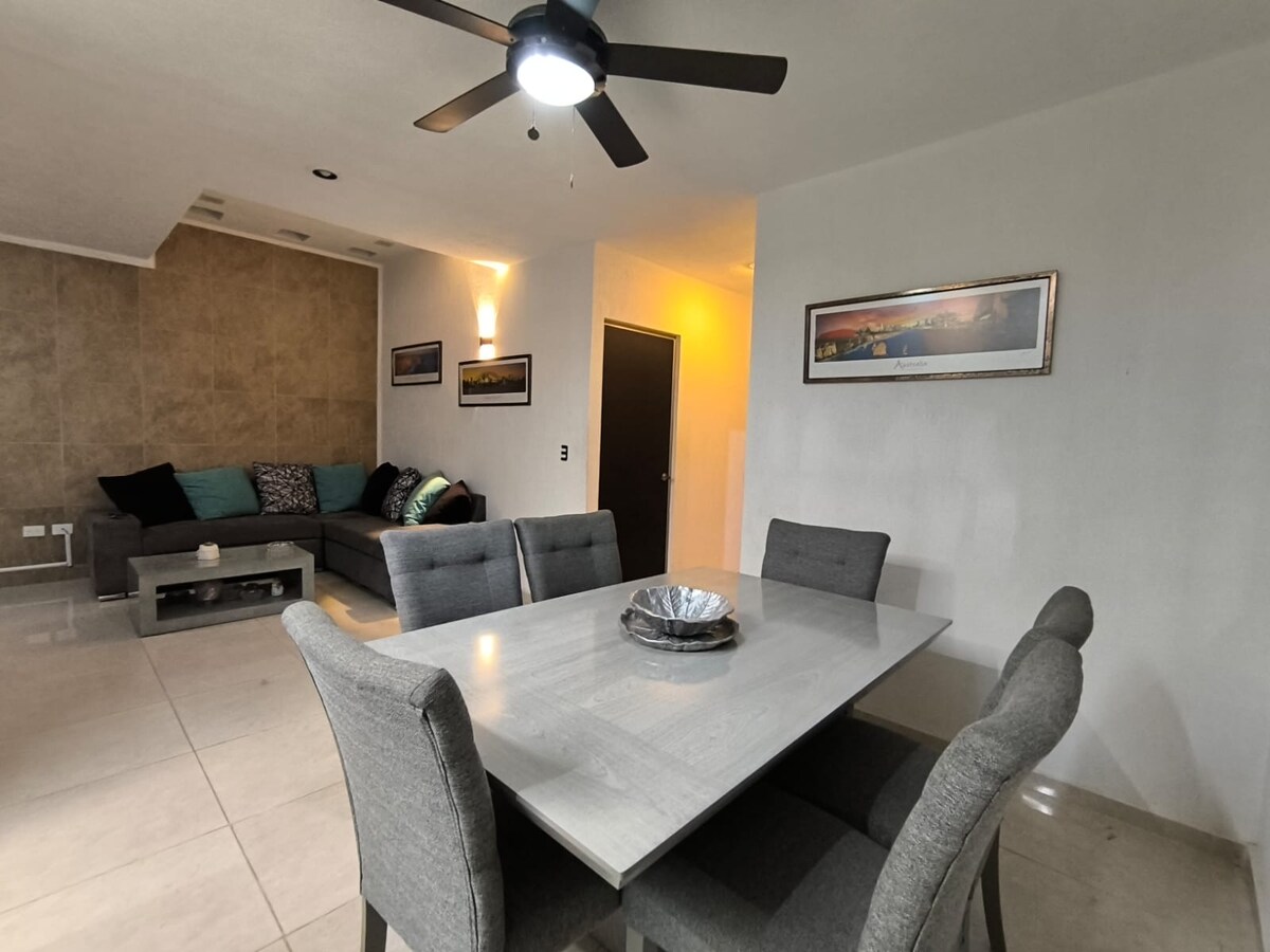 Suite laistigh d'fhorbairt chónaithe phríobháideach, Lig do scíth ar an saoire ghearr uathúil shíochánta seo. Scoir den ghnáthamh, teach fairsing ina bhfuil spásanna a ligeann duit léamh, éisteacht le ceol, machnamh a dhéanamh ar luí gréine, aclaíocht a dhéanamh, machnamh a dhéanamh, ióga a dhéanamh, cócaireacht a dhéanamh agus eispéiris a roinnt 10 nóiméad ó Chathair Mérida agus 20 nóiméad ó Puerto Progreso. Rochtain éasca ar bhóithre a théann chuig áiteanna cosúil le Sisal, Celestún, Izamal, Valladolid, Tulum, i measc áiteanna eile.