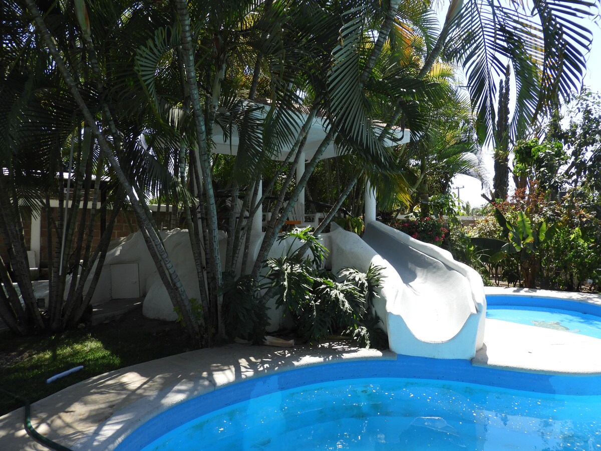Lig do scíth leis an teaghlach ar fad sa teach seo ina ndéantar suaimhneas a análú. Tá sé suite i bhforoinn shábháilte atá an - ghar do Cuernavaca. Linn snámha chomhroinnte agus Díon le gríoscán príobháideach. Ideal chun deireadh seachtaine a chaitheamh ar shiúl ón gcathair. Lonnaithe i gcroílár na ngairdíní imeachta in Xochitepec; is é an rogha is fearr é scíth a ligean le cairde nó le do theaghlach má théann tú chuig bainis. Gairdíní imeachta in aice láimhe: Piedra Alta -500m Quinta Puerta de Agua -500m Vista Luna-1.5Km Rincón Dorado -1.8Km Nautilus -3Km Finca Paraíso -4.5Km Amatus -4.5Km