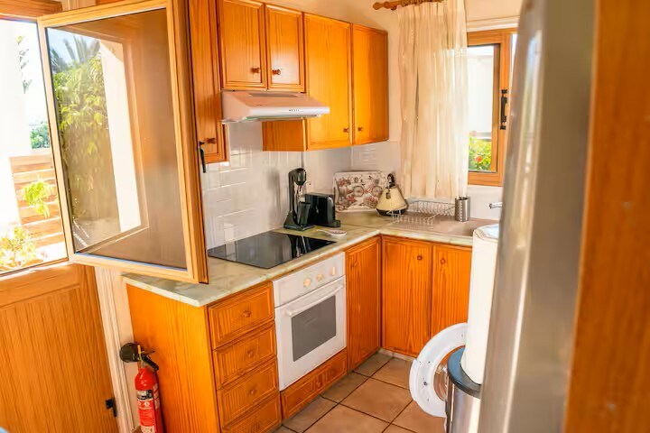 50 méadar ón bhfarraige, is rogha iontach é seo do lánúineacha, do theaghlaigh agus do chairde ar mhaith leo taitneamh a bhaint as a saoire i mbunaíocht na trá in Ayia Thekla. Tá dearadh plean oscailte ag an villa, le toilg compordacha, teilifís, bord bia agus cistin lánfheistithe le fearais nua - aimseartha. Is féidir leat rochtain a fháil ar an veranda mór le háit itheacháin lasmuigh agus an linn snámha ón tolglann. Tá aerchóiriú iomlán ar gach seomra le Wi - Fi saor in aisce ar fud na háite.