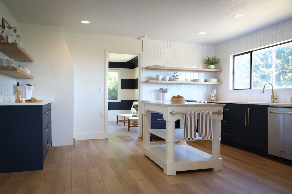 Wake up above the Willamette Valley, surrounded by Oregon’s most celebrated wineries. Located at the highest point in Dundee, this serene retreat offers exquisite views. Sip your morning coffee on the terrace, enjoying the fresh country air and feeling as though you’re floating above the hills. With more than 10 wineries within two miles, it’s an ideal base for exploring wine country. After a day out, return home to unwind with evening stargazing in the courtyard or on the terrace.