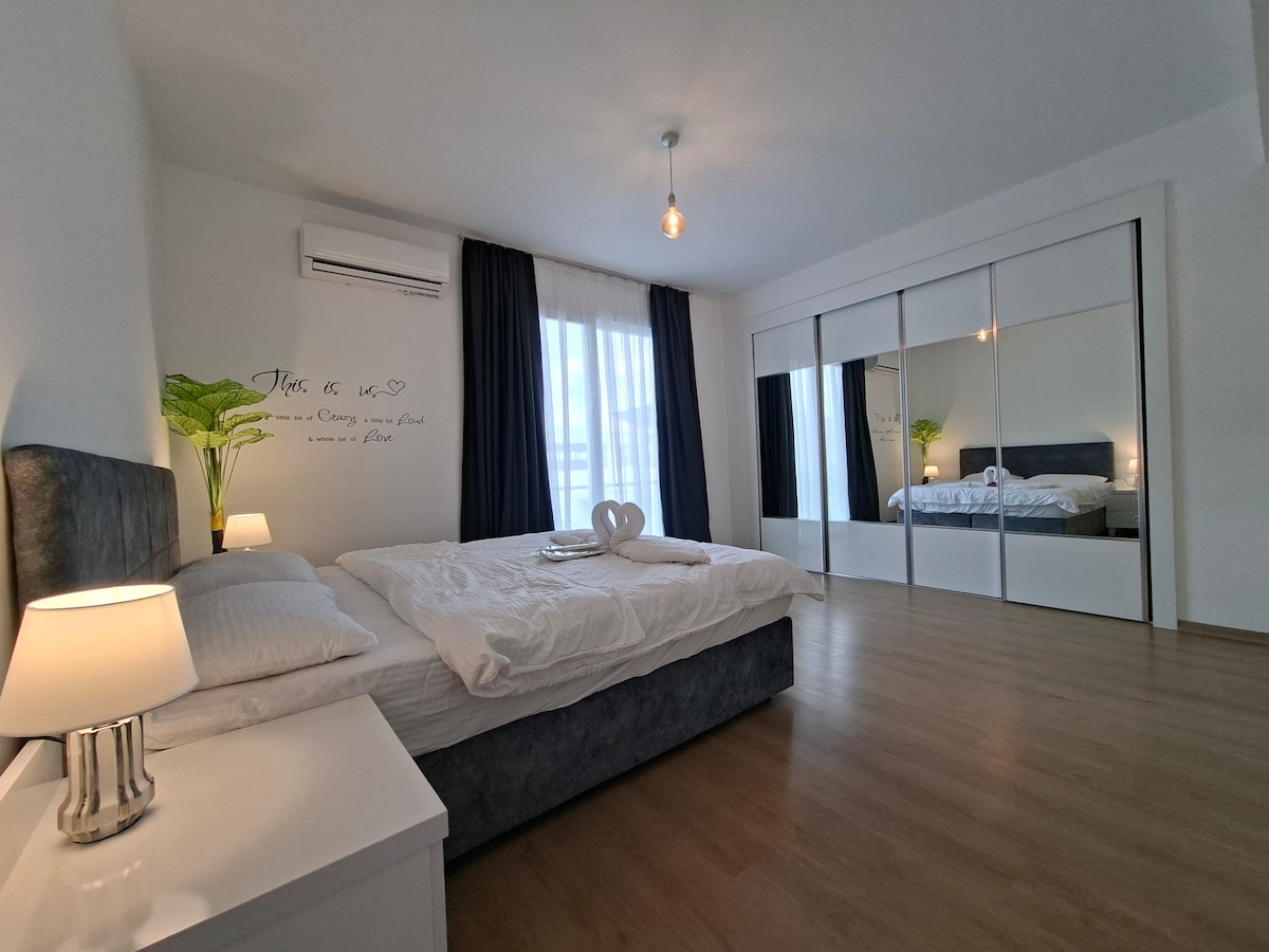 Is féidir leat do scíth a ligean mar theaghlach inár n - árasán luxurious, luxurious, Residence Residence Studio ar an trá, i gceantar na Cipire Thuaidh, le radhairc iontacha ar an Meánmhuir. Más mian leat, is féidir leat siúl chuig an trá ghainmheach i gceann 2 nóiméad nó is féidir leat taitneamh a bhaint as an linn snámha lasmuigh - linn snámha laistigh. Is féidir leat leas a bhaint as sabhna, folctha gaile agus roghanna eile hamam Turcach, traein sa seomra aclaíochta Is féidir leat do bhéilí a dhéanamh i do chistin féin nó na bialanna máguaird a bhaint amach de shiúl na gcos.