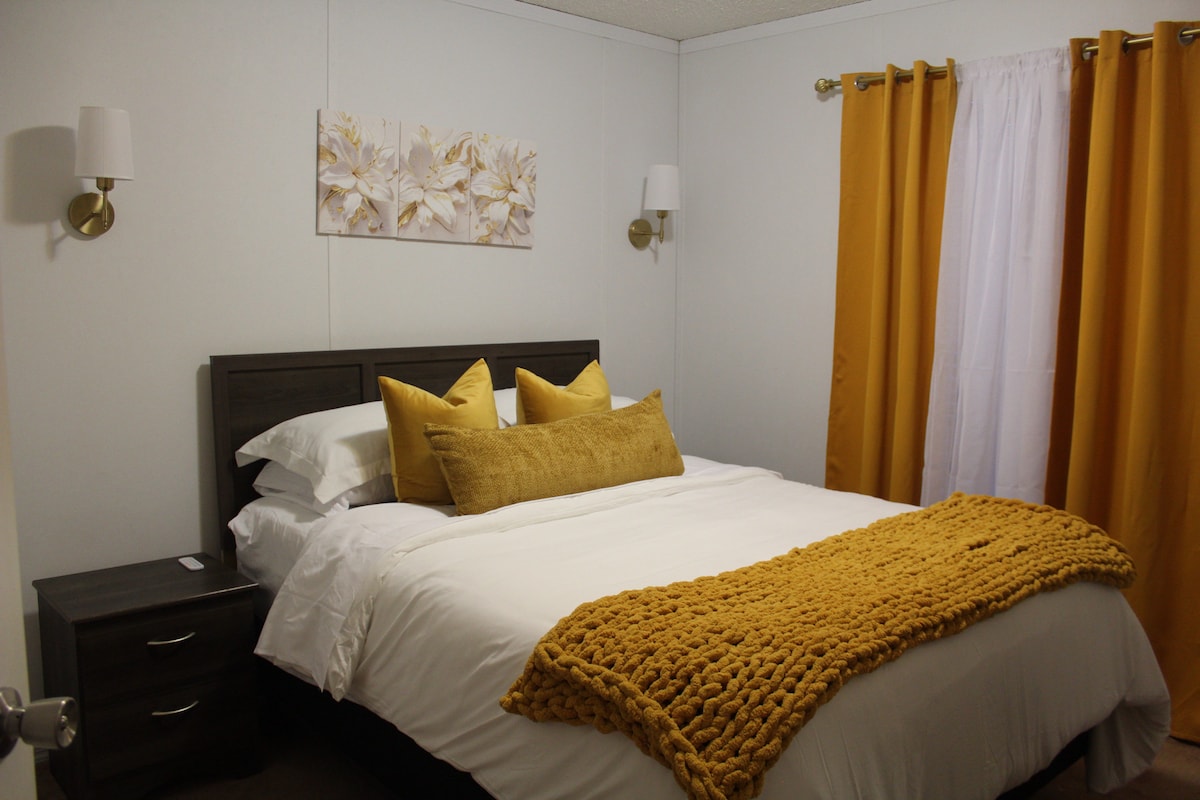 Bain tairbhe as Yellowknife sa seomra íoslaigh dhá sheomra leapa nuashonraithe seo ina bhfuil bealach isteach príobháideach. Codlaíonn an seomra suite go compordach suas le 5 aoi ag baint úsáid as an tolg tarraingthe amach (barrán cúr cuimhne san áireamh). Bain sult as cistin gheal theolaí, bia agus spás maireachtála atá feistithe le gach rud atá uait. Tá Wi - Fi ardluais agus teilifíseán ar fáil do do shiamsaíocht, agus cuirtear níochán ar an láthair leis mar áis duit. Cuirimid línéadach tí ar chaighdeán óstáin ar fáil agus coinnímid na caighdeáin ghlaineachta is airde.