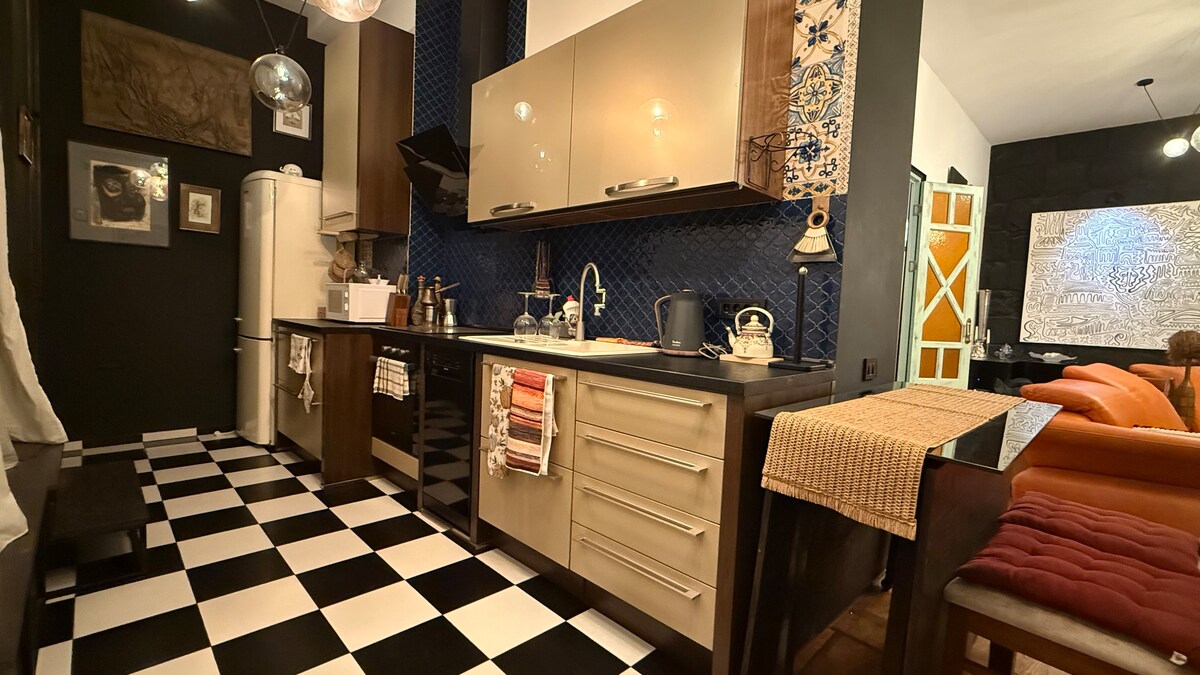 Apartments on In Yerevantsu Street 2 are the perfect choice for both leisure and business trips in the very heart of Yerevan, right next to Northern Avenue. Guests have at their disposal a bedroom with an orthopedic mattress, a studio-style living room with a sofa, dining area, air conditioning, and TV, a fully equipped kitchen (including a dishwasher), a bathroom with a shower cabin, and a balcony with a view. Free Wi-Fi, premium towels, toiletries, and 24/7 security ensure a comfortable stay.